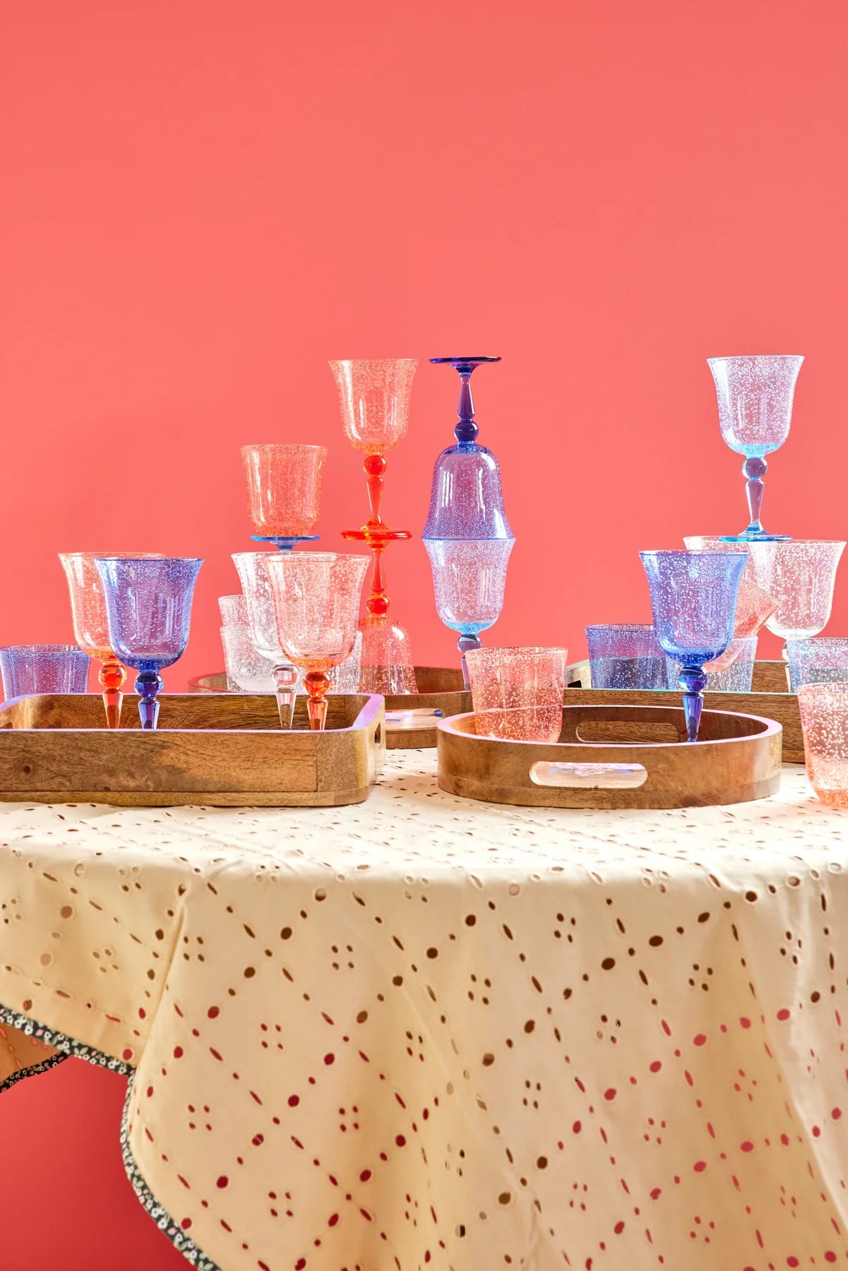Das blaue Blasendesign verleiht Ihrem gedeckten Tisch ein frisches und modernes Aussehen. Kombinieren Sie es mit anderen Farben aus der Acrylserie von RICE, um einen persönlichen und lebendigen Ausdruck zu schaffen, oder verwenden Sie das Glas als farbenfrohes Element unter Ihren traditionellen Gläsern, um dem Tisch Charakter zu verleihen.
