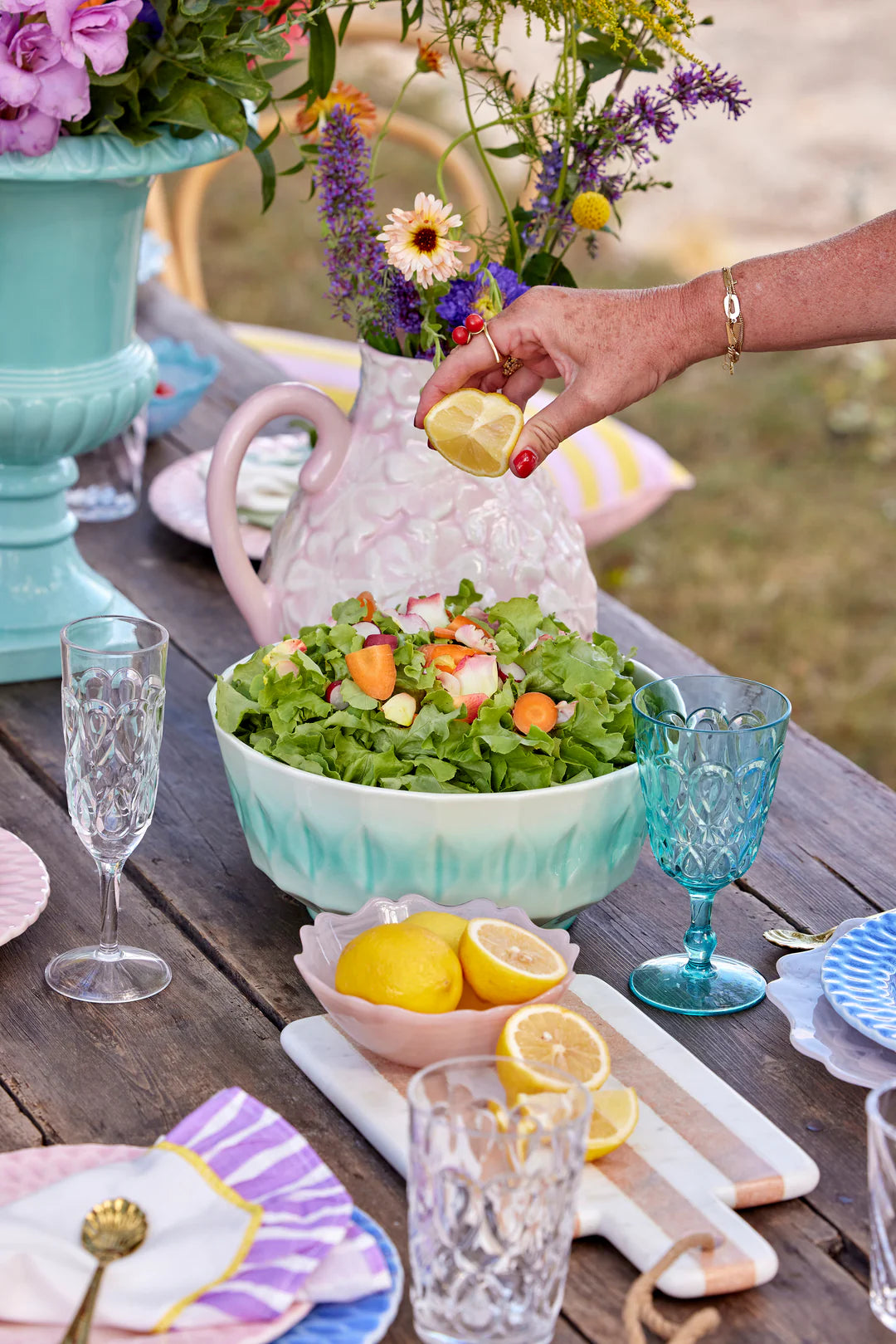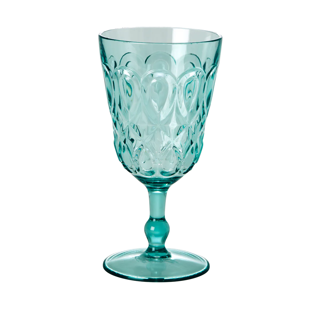 Diese eleganten Weingläser aus Acryl in einem frischen Mintton von RICE vereinen Stil und Funktionalität. Mit ihrem Retro-inspirierten Design und der facettierten Oberfläche sorgen die Gläser sowohl im Innen- als auch im Außenbereich für ein schönes Lichtspiel. Das Acrylmaterial sorgt dafür, dass die Gläser für viele verschiedene Anlässe langlebig und praktisch sind.
