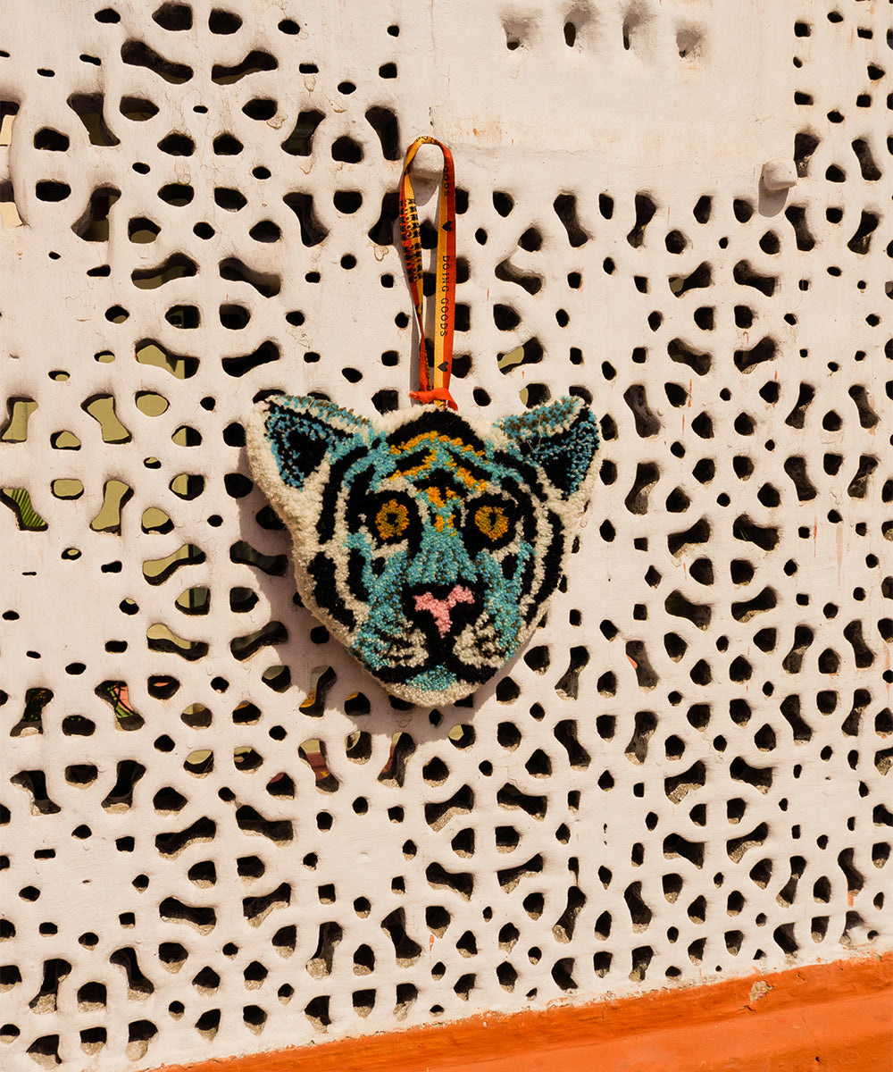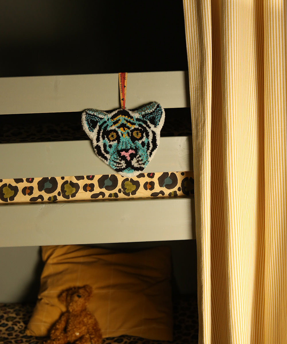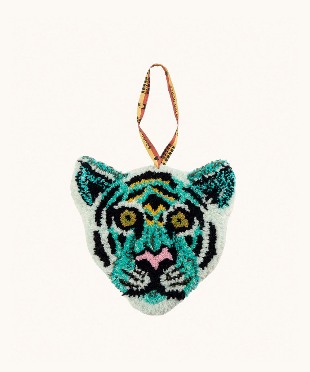 Mit dem Admiral Tiger Gift Hanger bringen Sie verspielten Charme in Ihr Zuhause. Dieser einzigartige Wandhaken hat einen stilisierten Tigerkopf in blauen Farben, der aus Wolle und Baumwolle gefertigt ist. Die praktische Tasche auf der Rückseite eignet sich ideal zum Verstauen einer Grußkarte, einer kleinen Aufmerksamkeit oder einer Überraschung. Es handelt sich um eine kreative und wiederverwendbare Lösung, die sowohl als Geschenkverpackung als auch als Dekoration dient.