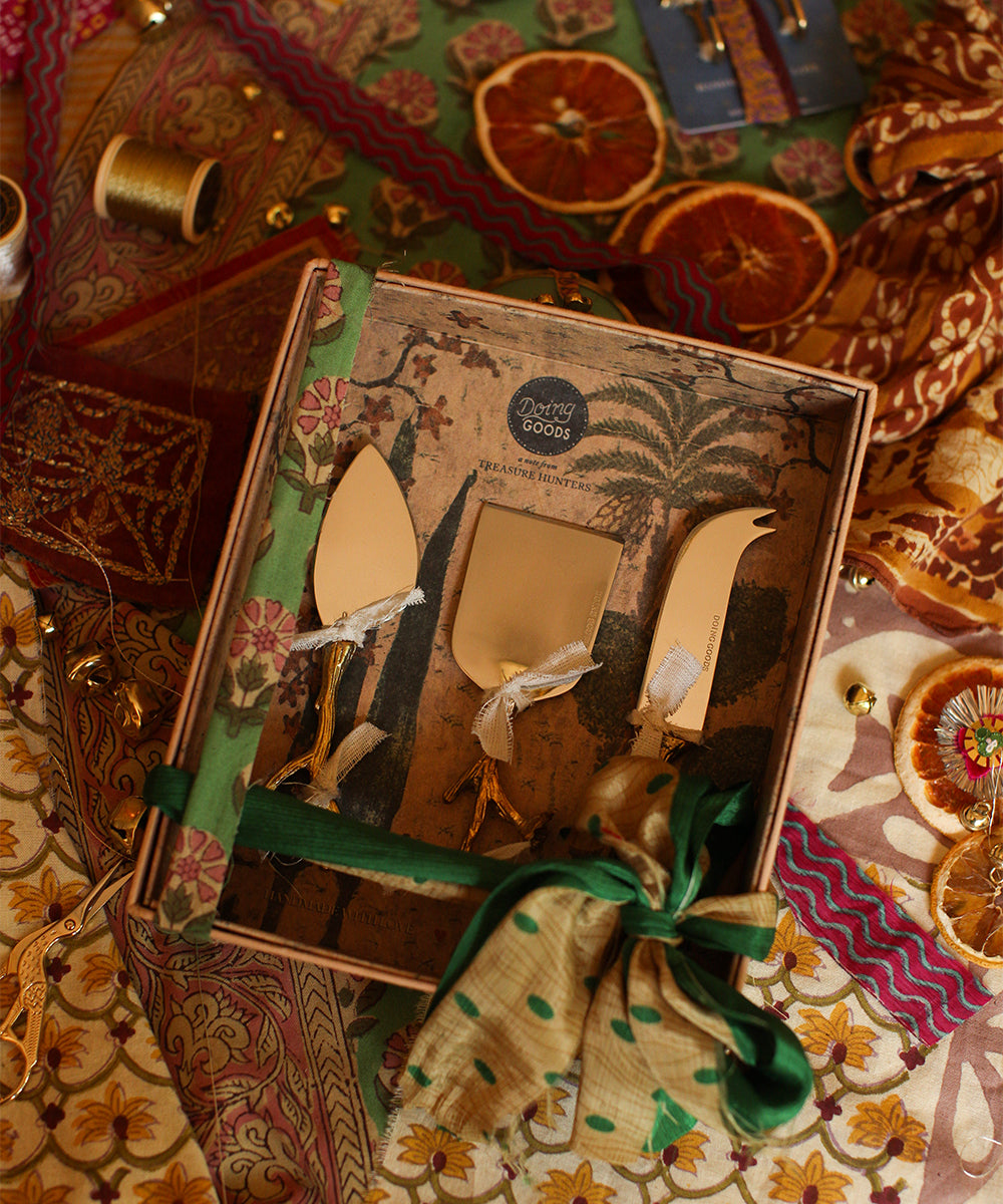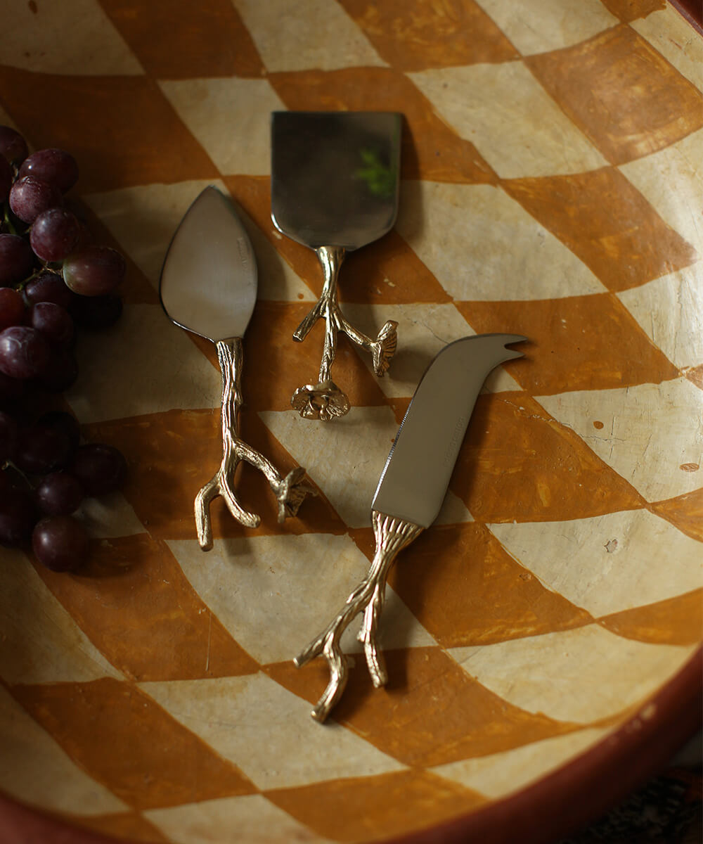 Dette ostekniv-sæt er håndlavet i Indien, hvilket gør hver kniv unik. Du kan forvente små variationer i udseendet, som kun tilføjer til deres charme.