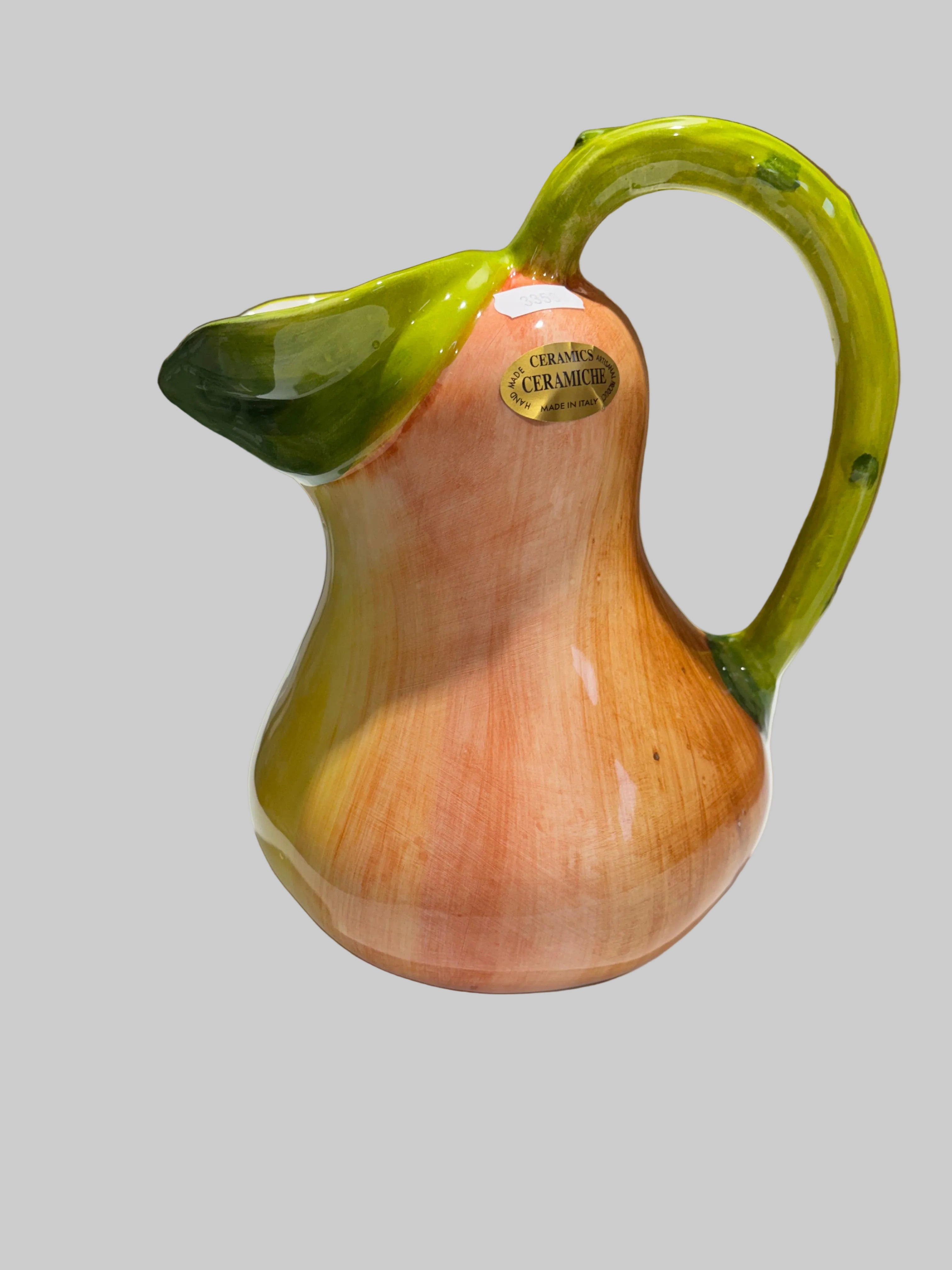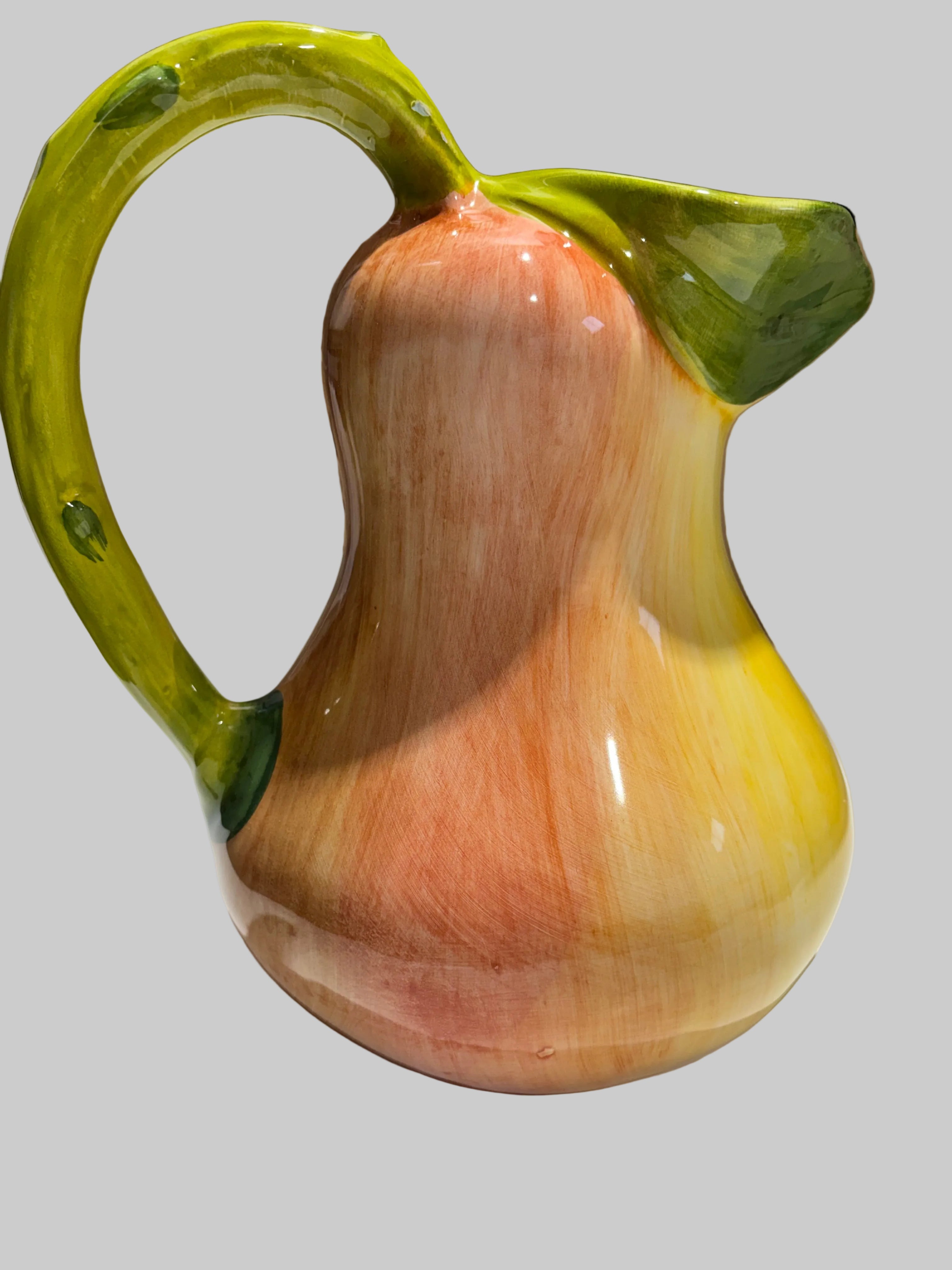 Entdecken Sie die Schönheit italienischer Handwerkskunst mit dieser atemberaubenden Birnenkanne von Selected by Dims Studio. Jede Kanne ist ein einzigartiges Kunstwerk, handgefertigt und handbemalt von talentierten Kunsthandwerkern, wodurch sichergestellt wird, dass keine Kanne der anderen gleicht. Die verspielte Birnenform verleiht Ihrer Einrichtung eine lustige und dekorative Note.