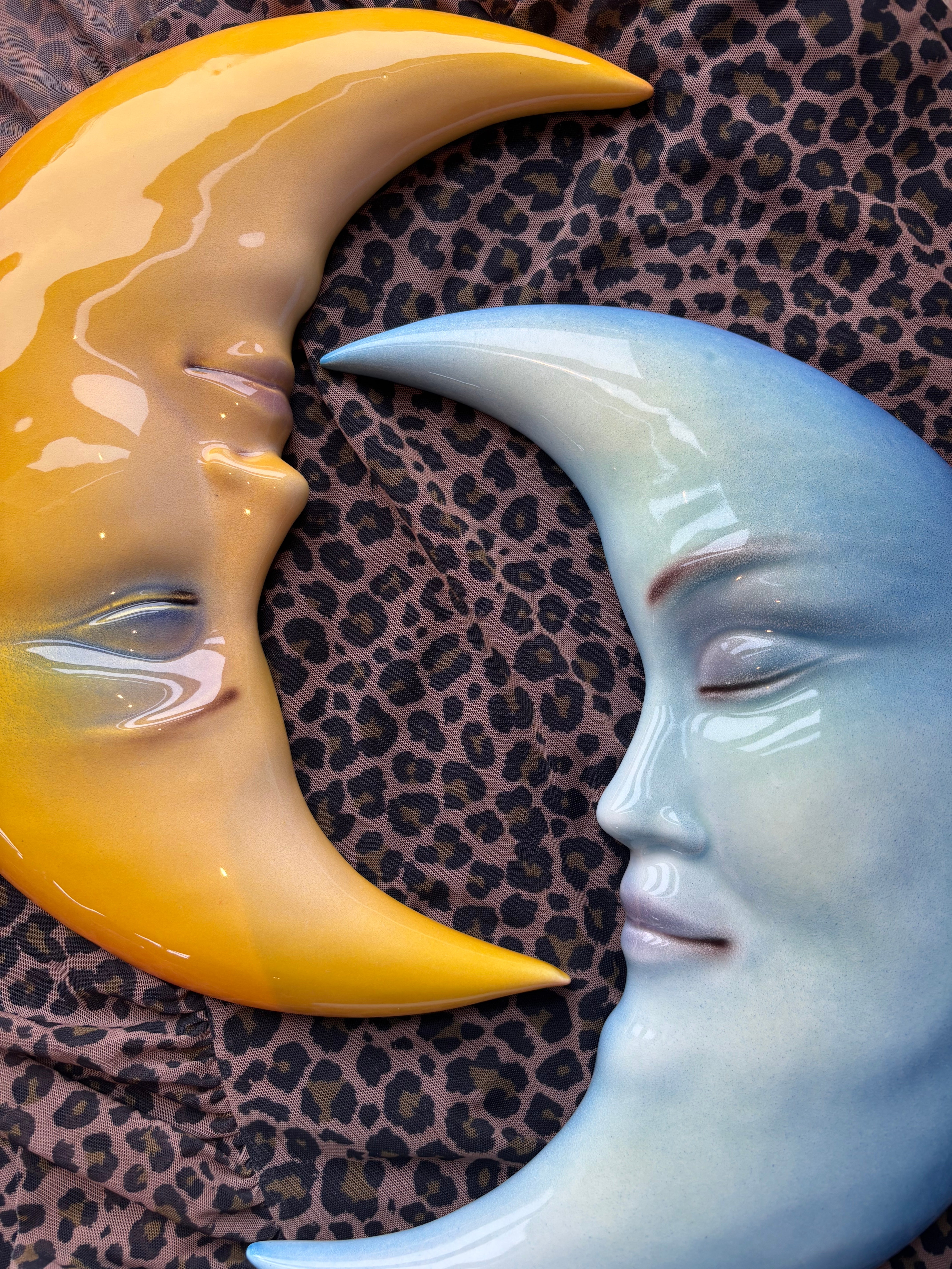 Blauer Mond Wandbehang aus italienischer Keramik mit charakteristischen Details