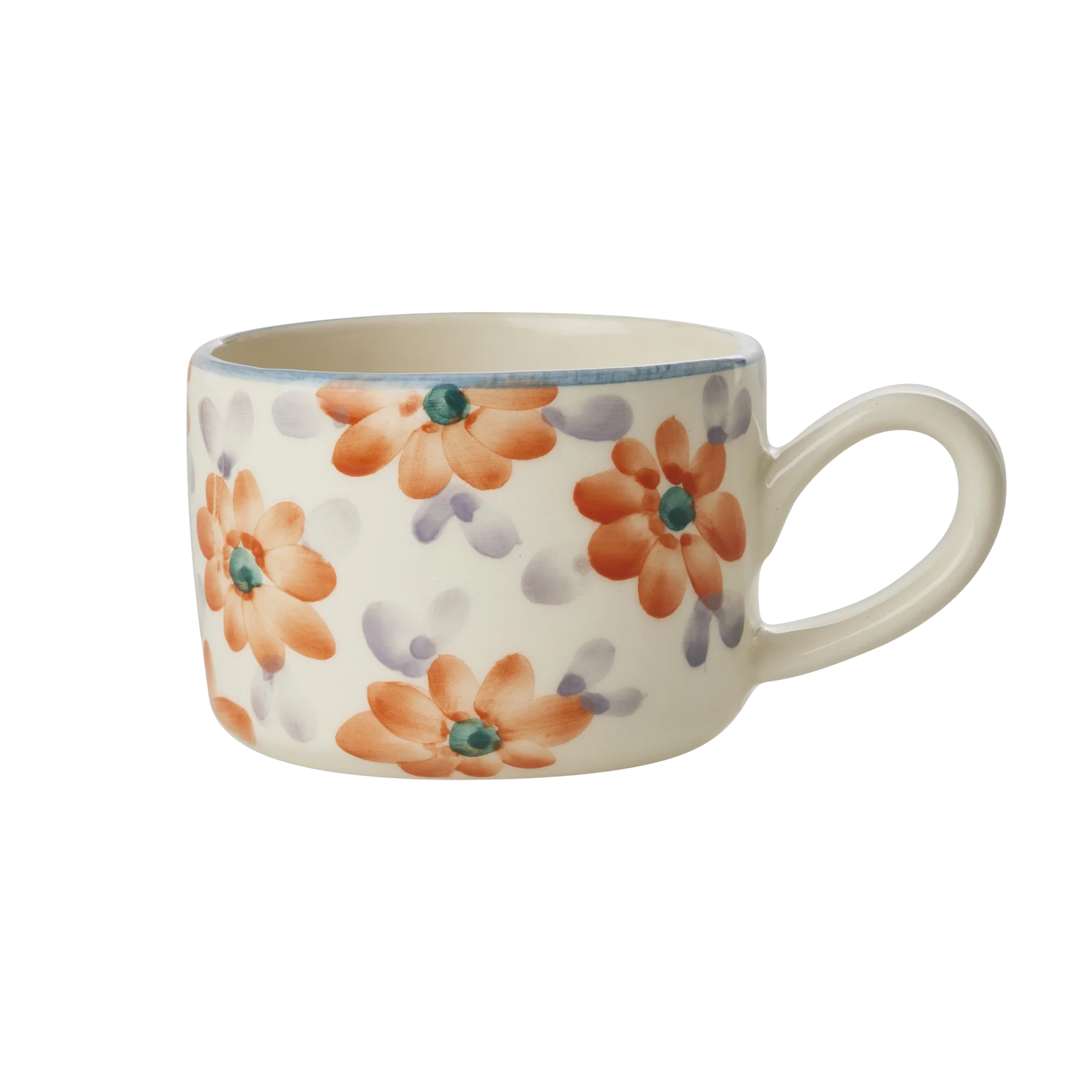 Oplev charmen ved at nyde din yndlingsdrik i en kop, der er lige så unik som dig. Denne håndmalede cappuccinokop fra RICE bringer farver og liv til dit morgenritual med sine smukke orange blomster. Hver kop er skabt af talentfulde portugisiske kvinder, hvilket betyder, at ingen kop er helt ens. Det er en skøn måde at tilføje personlighed til dit køkken.