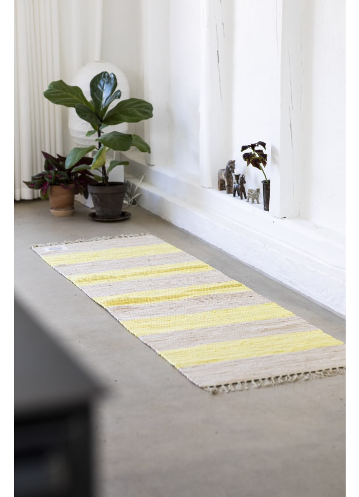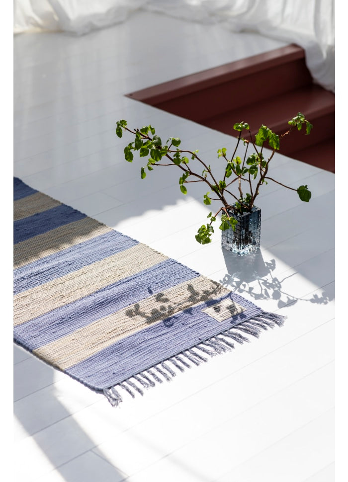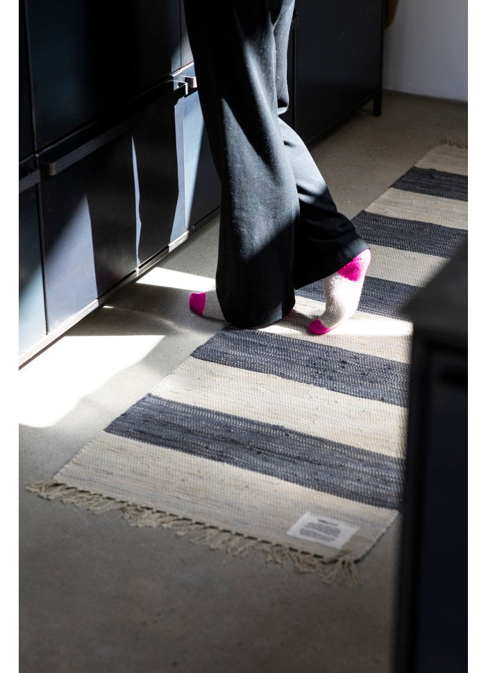 - Material: Hand mit recycelten Baumwollstoffen ausgewebt, was jeden Teppich einzigartig macht.