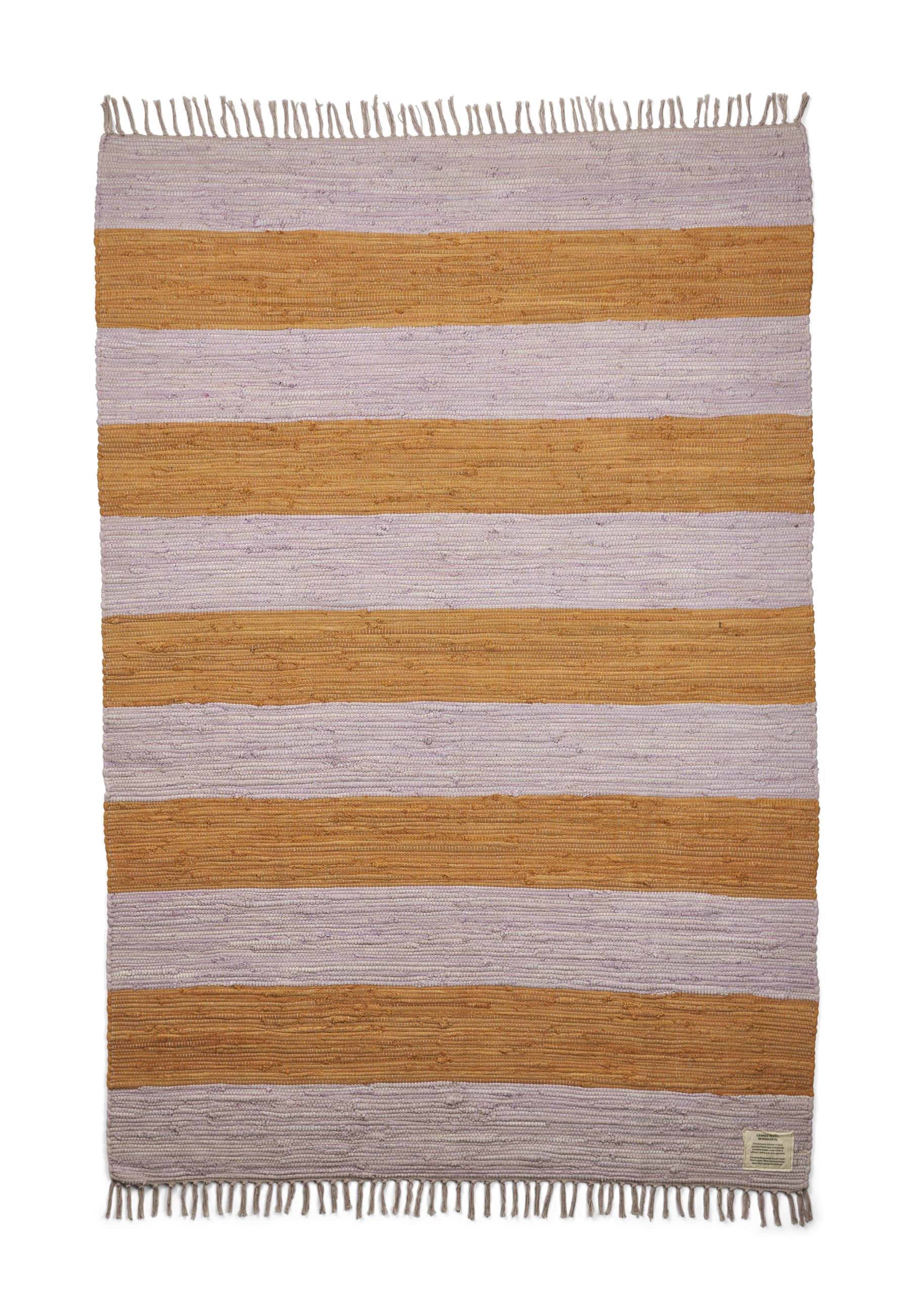 Der Bongusta Chindi-Teppich in den Maßen 140 x 200 cm ist handgewebt aus recycelten Baumwoll-T-Shirts und Stoffresten. Dieser farbenfrohe Teppich im No-Waste-Design sorgt für eine gemütliche Atmosphäre und hat ein charakteristisches Streifenmuster mit passenden Quasten, die jeden Teppich zu einem Unikat machen.
