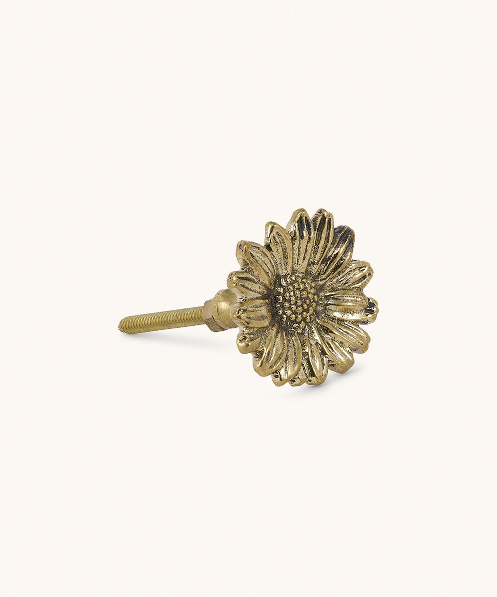 Mit diesem Blumenknopf in Messing, der Waren ausführt, können Sie Ihrem Zuhause eine einzigartige und elegante Note verleihen. Der schöne Knopf ist perfekt für Schubladen, Schränke oder Türen und verleiht jedem Möbelstück eine persönliche Note.