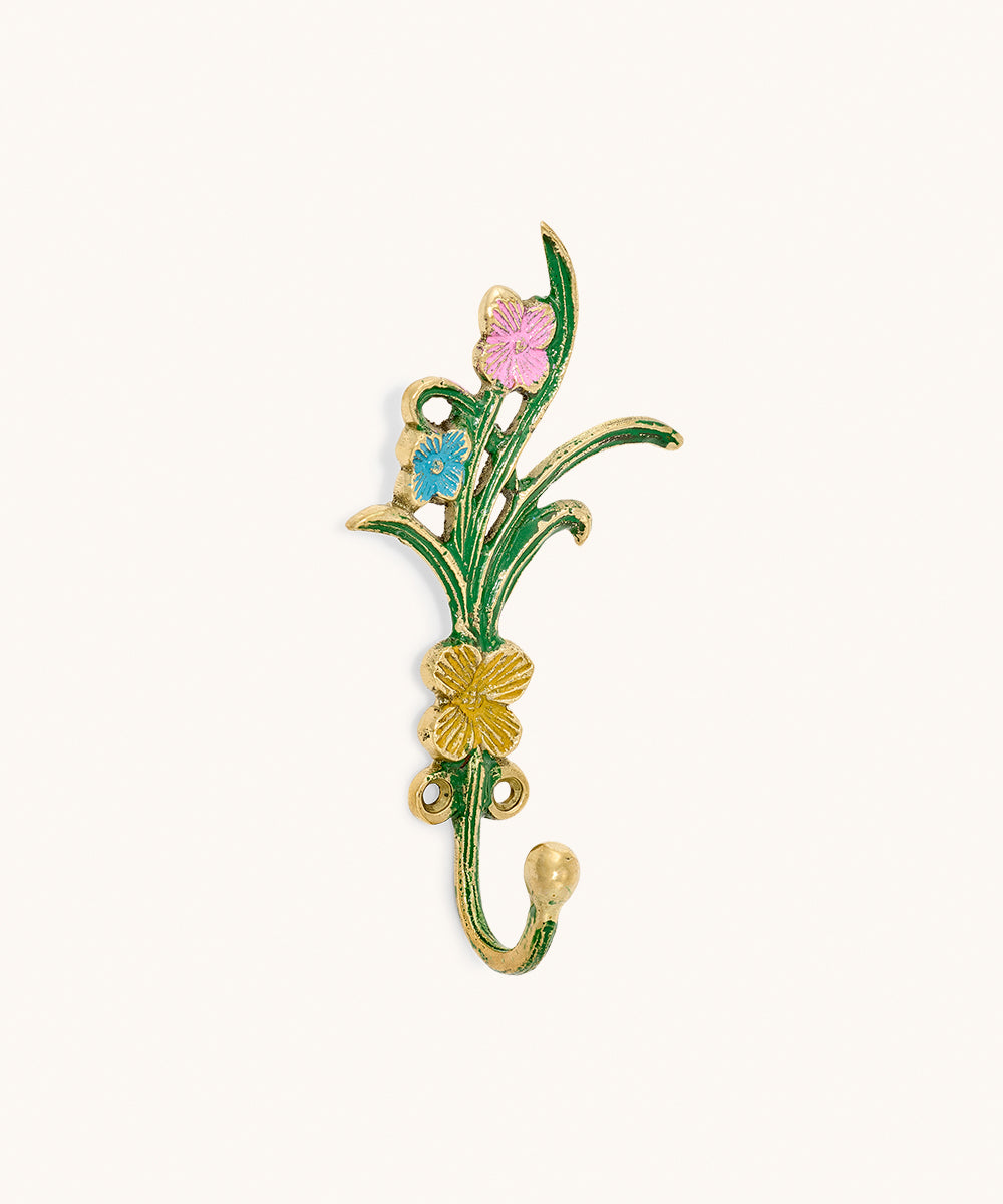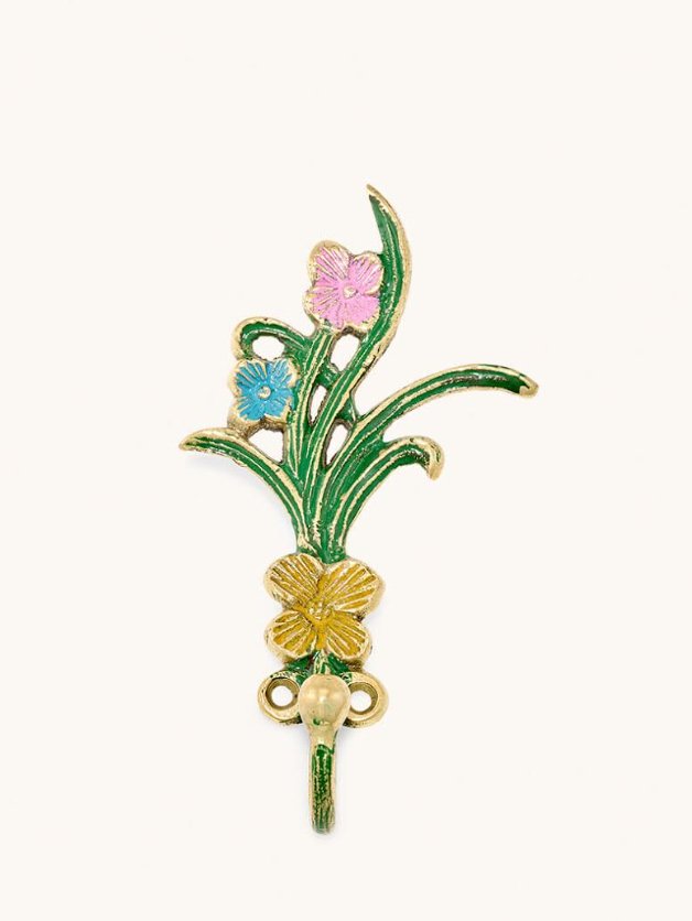 Der farbenfrohe Blumenhaken besteht aus recyceltem Messing. Daher haben die farbenfrohen Blumen einen schönen Gold -Look, der hinter den schönen Farben der Blumen erblickt werden kann. Die Kombination der Farbe und der natürlichen Farbe des Messings liefert die schönsten Details der farbenfrohen Blumenhaken.