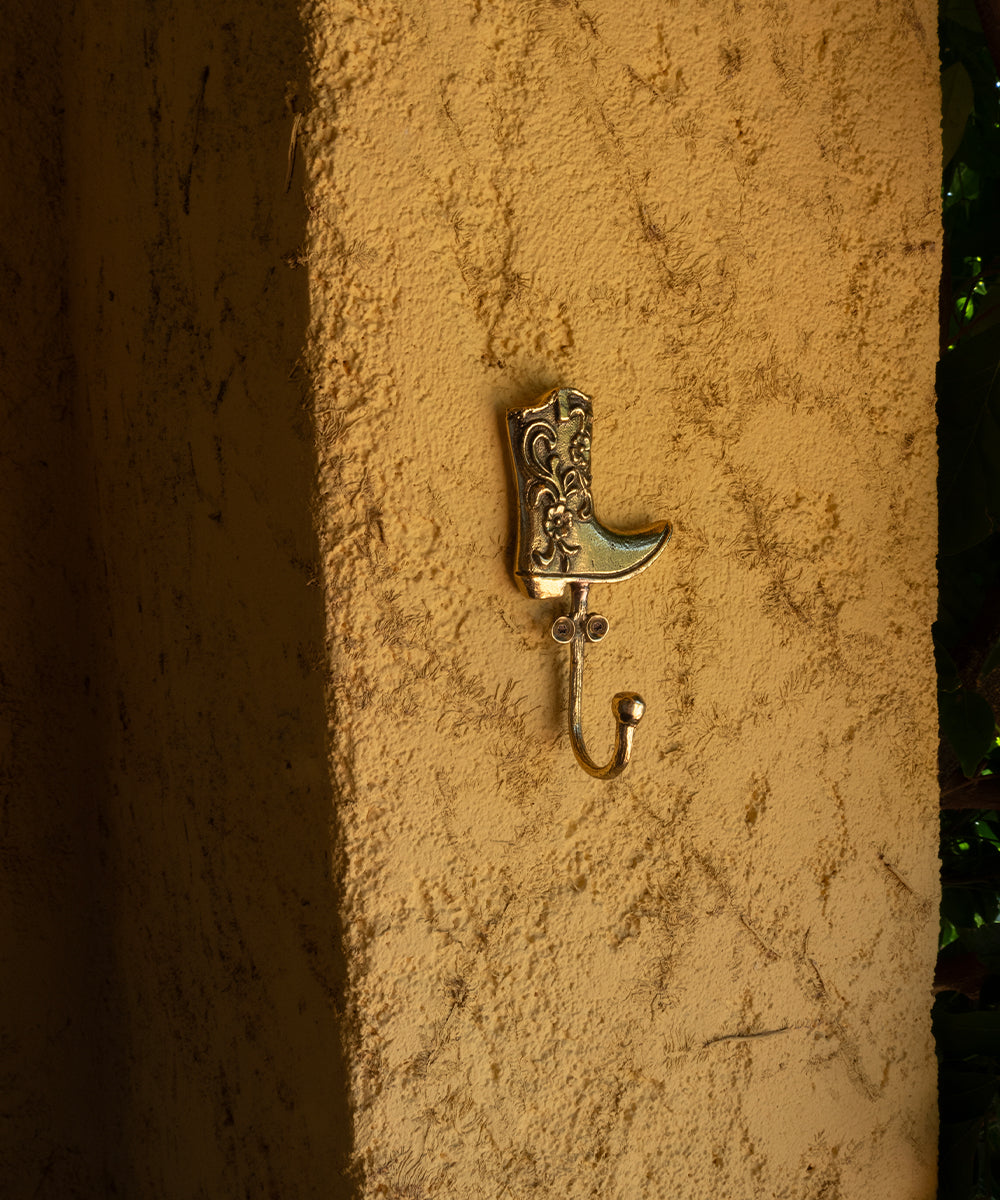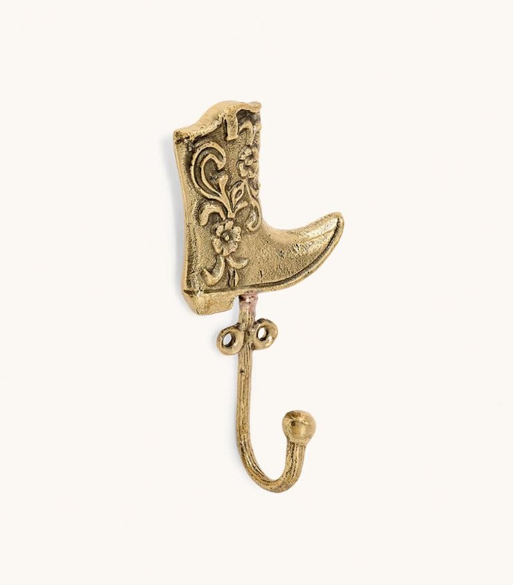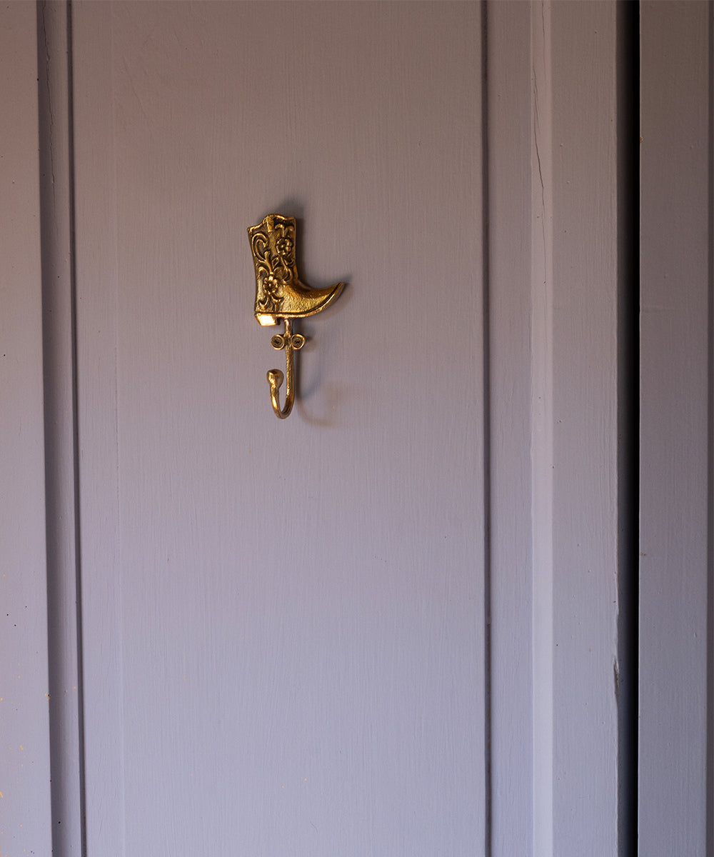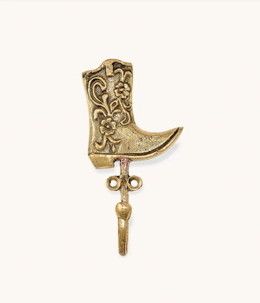 Dieser Haken zeigt einen coolen Cowboy -Stiefel mit dekorativen Blumen an der Seite des Kofferraums. Der Cowboy -Kofferungshaken besteht aus recyceltem Messing. Die Kombination des Hakenmaterials, das ihm ein rohes goldenartiges Aussehen verleiht, und das Motiv des Hakens selbst erzeugt die coolste westliche Stimmung. Wenn Sie eine persönliche und dekorative Wendung in Ihrem Weg, außerhalb Ihres Kleidungsschranks oder in Ihrem Badezimmer fehlen, ist der Cowboy -Kofferraum eine wirklich gute Wahl.
