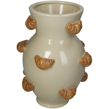 Den neutrale beige farve gør vasen let at integrere i forskellige indretningsstile og farvepaletter. Dolomitmaterialet giver vasen en mat finish og en taktil kvalitet, der skaber dybde og karakter. Placer den i køkkenet som en sjov reference til croissantens oprindelse, eller brug den i stuen som et samtaleemne.