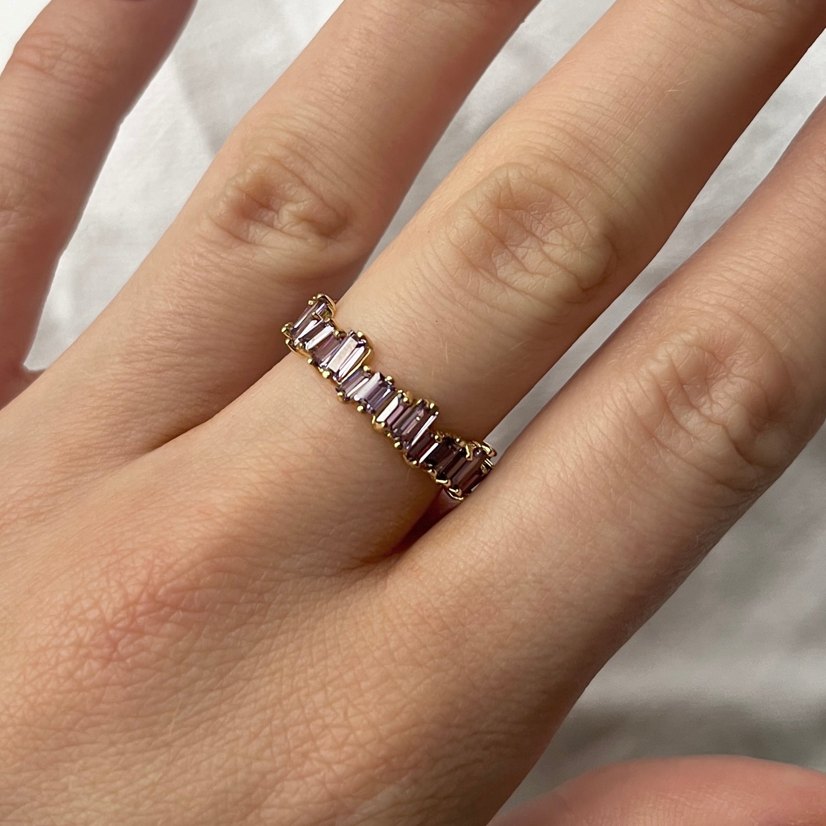 Eterna -Ring fängt die Essenz zeitloser Eleganz mit seinen rohen, rosa Zirkonen ein, die in einem funkelnden Ewigkeit um den Finger tanzen. Tragen Sie Ätherna wie eine Solo -Anweisung oder mischen Sie und passen Sie sie mit anderen Ringen an, um einen raffinierten Look zu erzielen. Der Eterna -Ring ist auch mit lila Steinen gefunden.