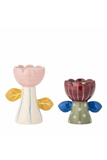 Verleihen Sie Ihrem Zuhause mit diesem einzigartigen Set an Kerzenhaltern einen Hauch von Charme. Diese Florita-Votivkerzenhalter von Bloomingville bringen mit ihrer handbemalten Oberfläche und den gewellten Rändern Leben und Farbe in Ihre Einrichtung und schaffen eine gemütliche Atmosphäre.