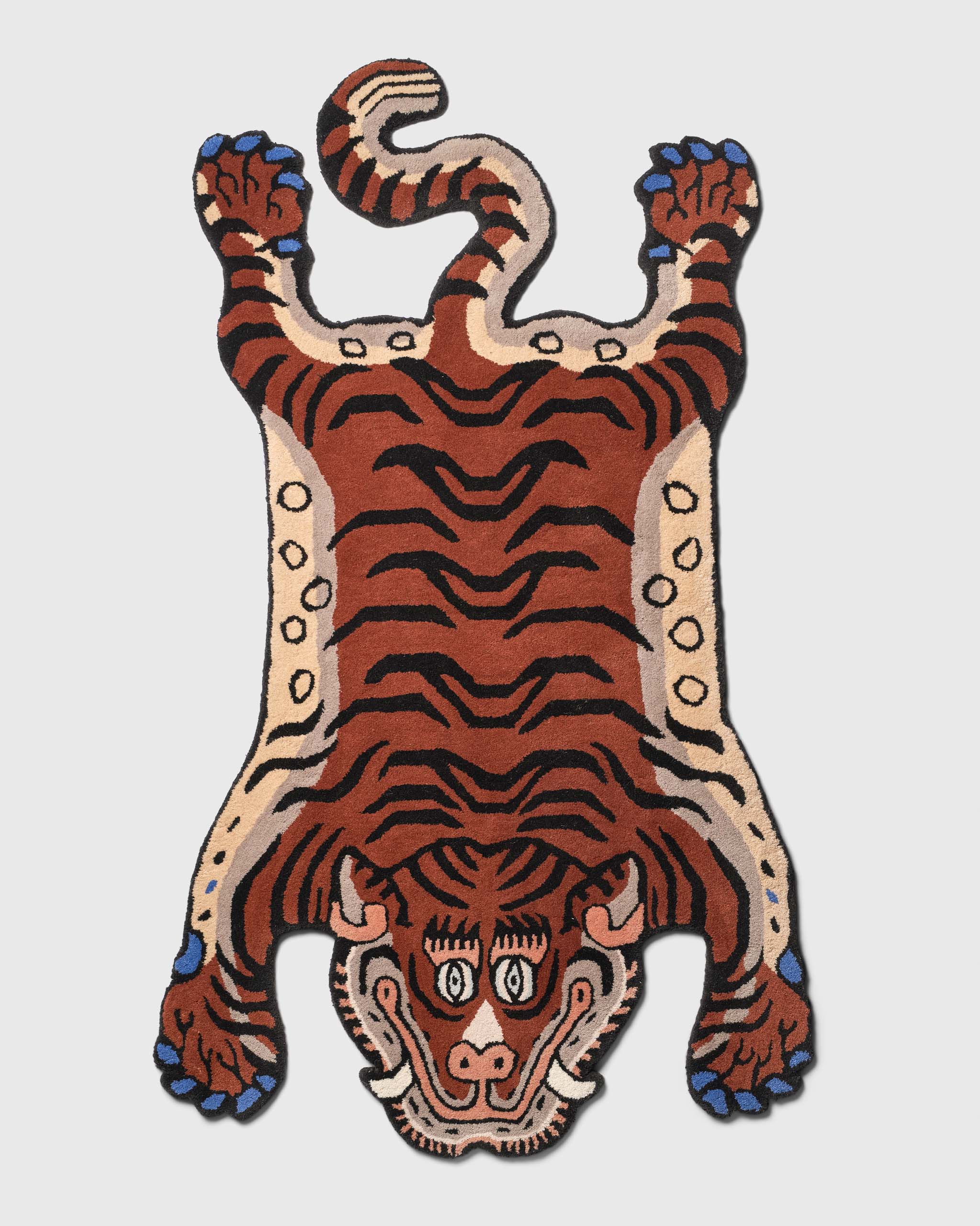 Die schöne Frankie Tiger -Decke ist eine neuere Version des Originals Burma Tigerdeckeund hat leicht kältere Farbtöne und blaue Nägel. Siehe auch Tiger Tigerdecke, Wenn Sie sich mehr für die leichteren Pastellfarben interessieren!