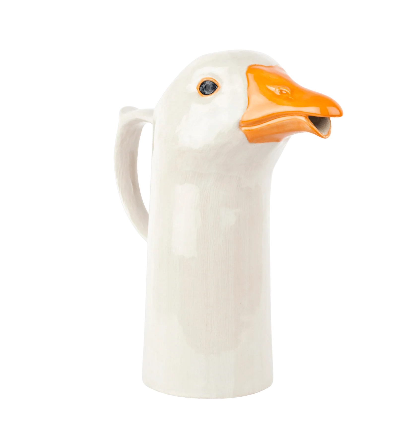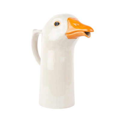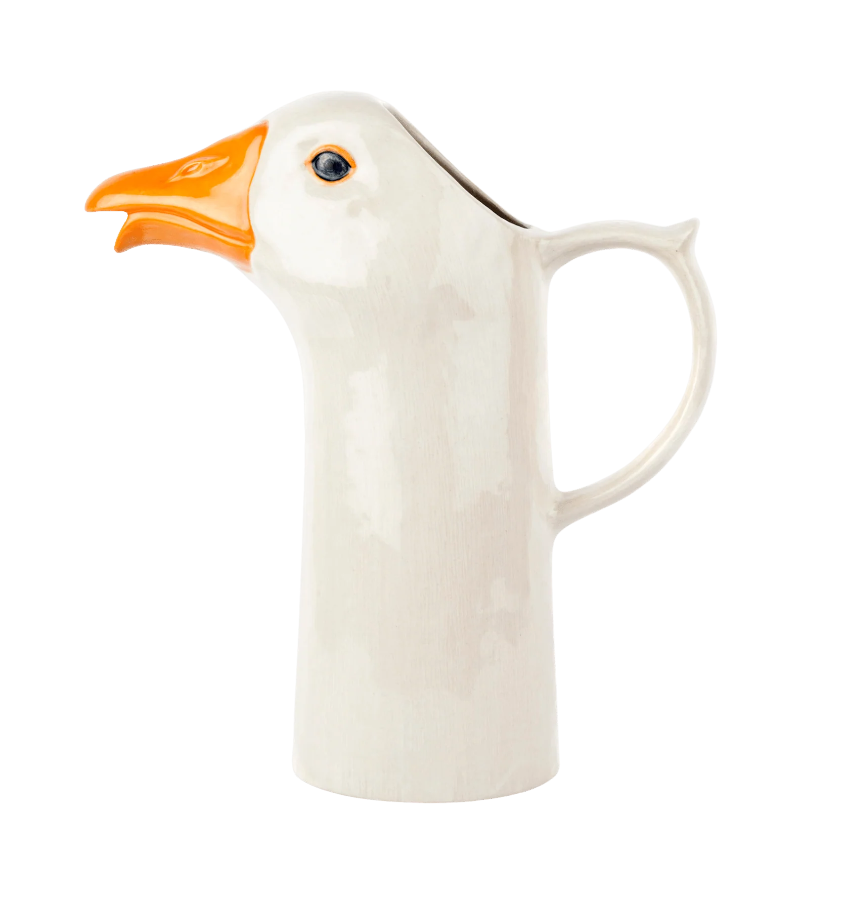 Denne charmerende ande kande fra Quail er fremstillet i holdbart stentøj og håndmalet med omhu. Med sin karakteristiske gåseform tilfører den personlighed til din bordopdækning, samtidig med at den fungerer praktisk til servering af vand, saft eller andre drikkevarer.