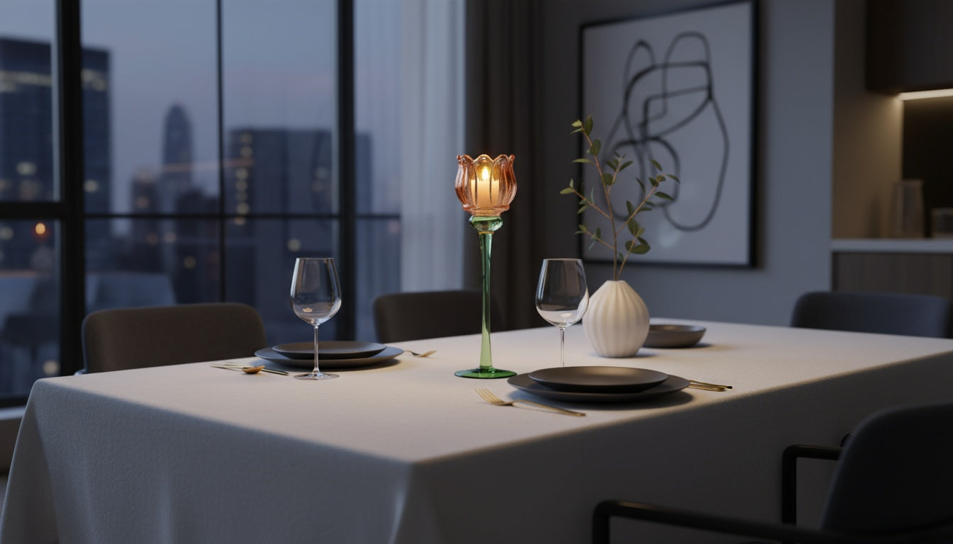 Eleganter Kerzenhalter mit gelben Blumen, der den Frühling in Ihr Zuhause bringt