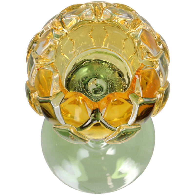 Das gelbe Blumenmotiv des Glaskronleuchters sorgt für einen frischen und natürlichen Look, der sowohl in modernen als auch in klassischen Innenräumen gut funktioniert. Das Material lässt das Licht schön durchscheinen und hebt beim Anzünden des Kerzenständers das Blumenmotiv hervor, was für eine besondere Atmosphäre im Raum sorgt.
