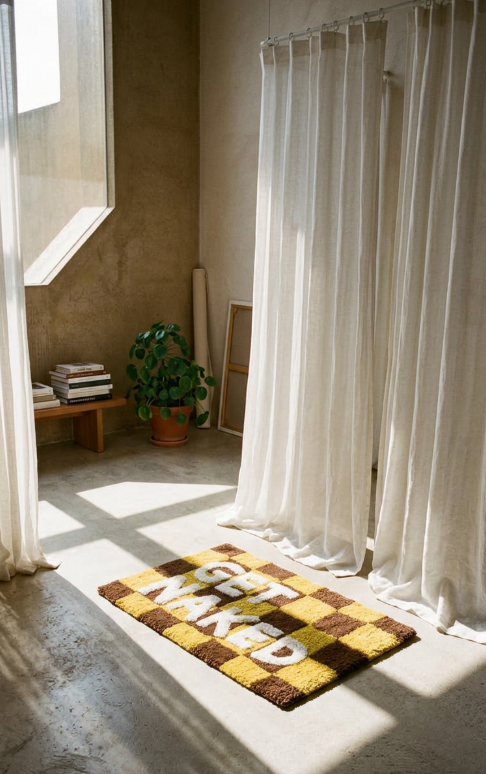 Die Badematte hat ein zeitloses Design mit dem Schriftzug „Get naked“, der Ihrem Badezimmer eine verspielte Note verleiht. Das Baumwollmaterial der Matte ist nicht nur angenehm zu begehen, sondern auch pflegeleicht, da sie in der Maschine gewaschen werden kann. Das macht sie zu einer praktischen Wahl für den geschäftigen Alltag.