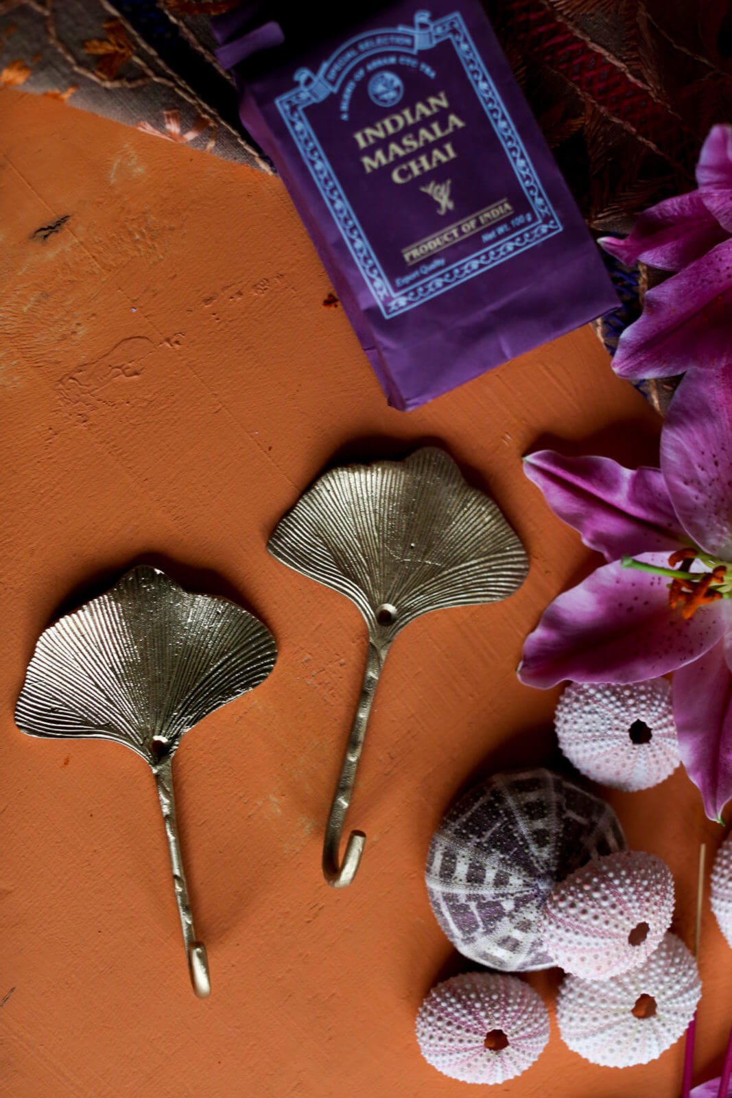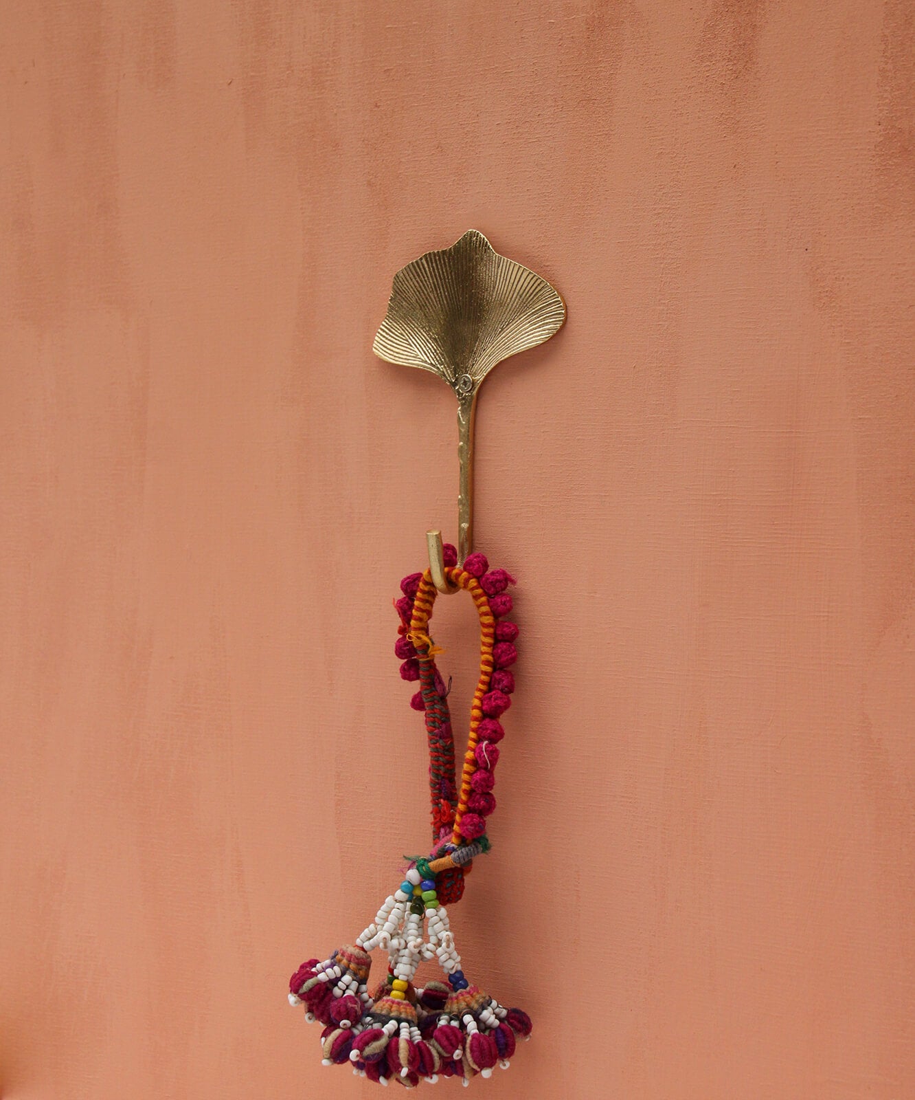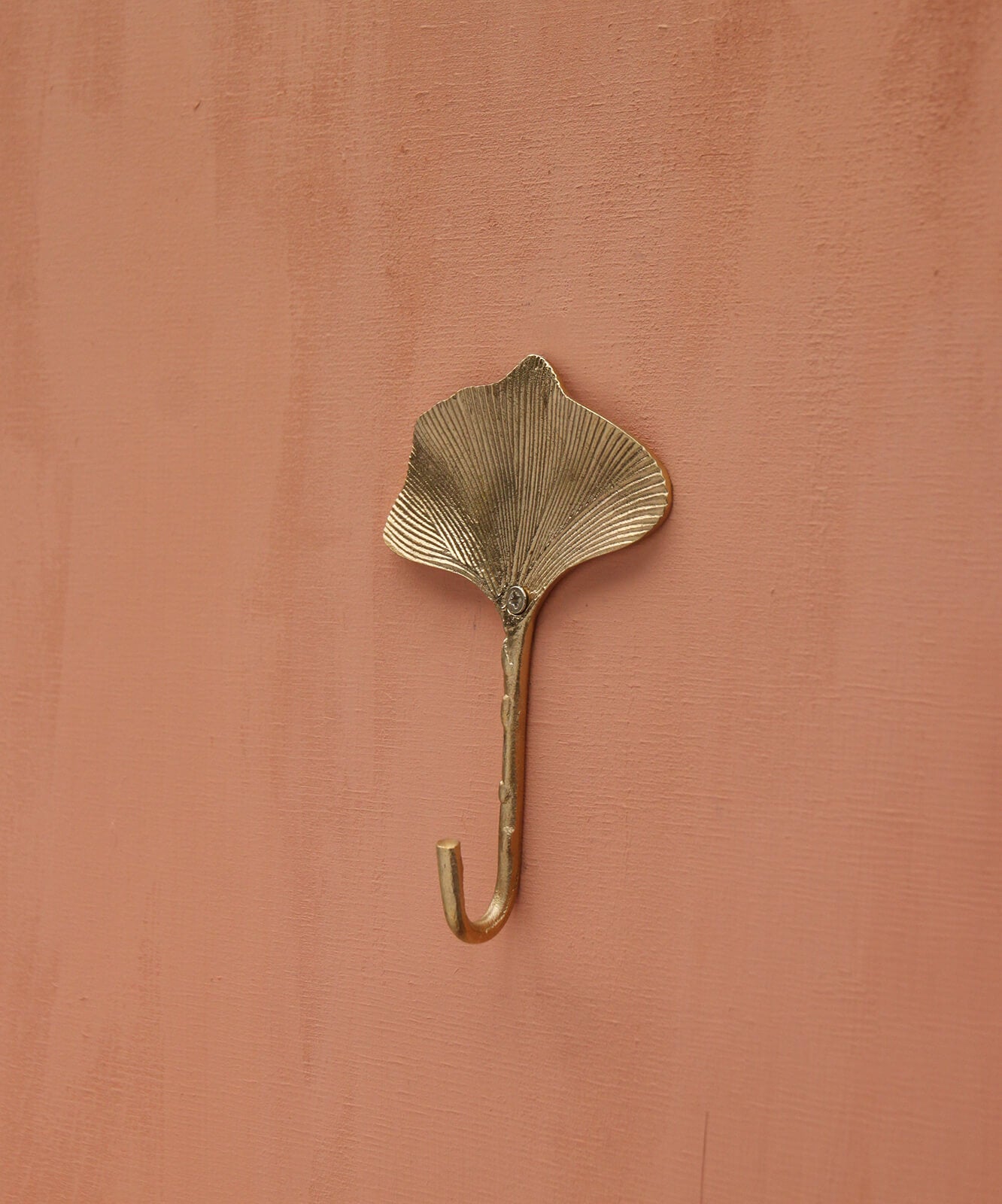 Der feinste Haken in 100 %recyceltem Messing geformt wie eine schöne Ginko -Klinge.