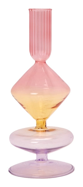 Verwandeln Sie Ihr Zuhause mit diesem wunderschönen Glas Kerzenleuchter in Lila, Gelb und Rosa. Der Candlestick verleiht jedem Dekor ein verspieltes und farbenfrohes Element und ist sowohl für den Alltag als auch für die Party perfekt. Das farbenfrohe Design fällt ins Ausdruck und schafft eine gemütliche Atmosphäre, wo immer es platziert ist.