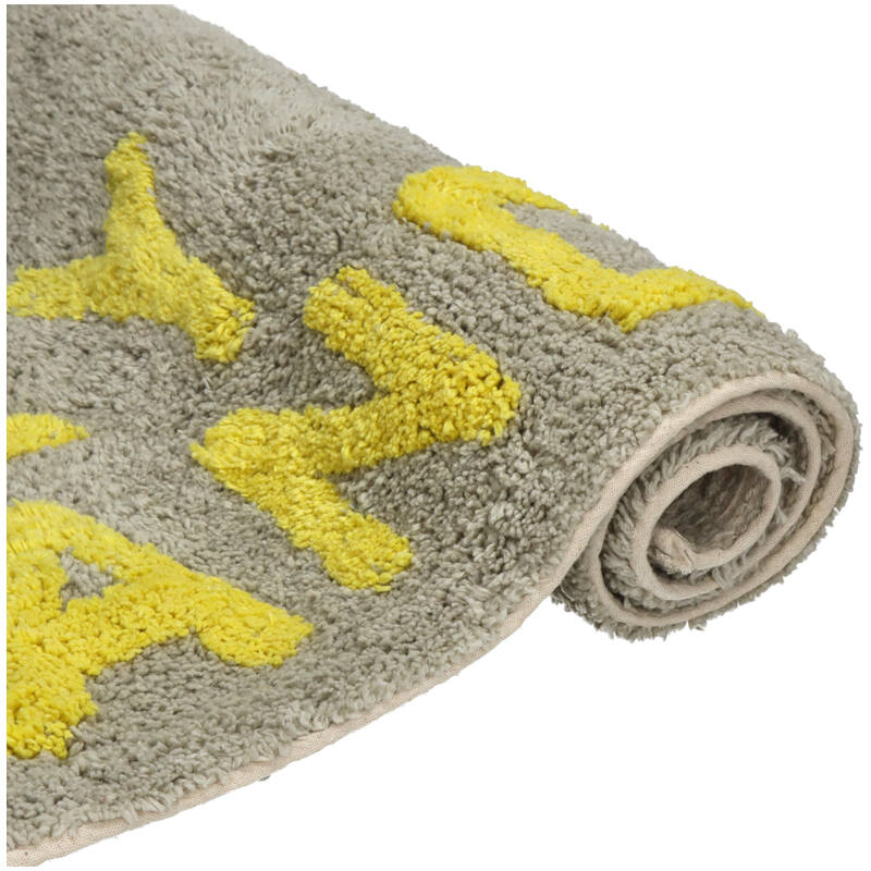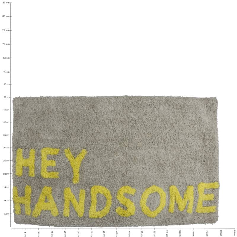 Den gule badeværelsesmåtte med teksten Handsome tilføjer en charmerende og stilfuld detalje til dit badeværelse. Med sine praktiske mål på 50x80 cm er den både funktionel og dekorativ.