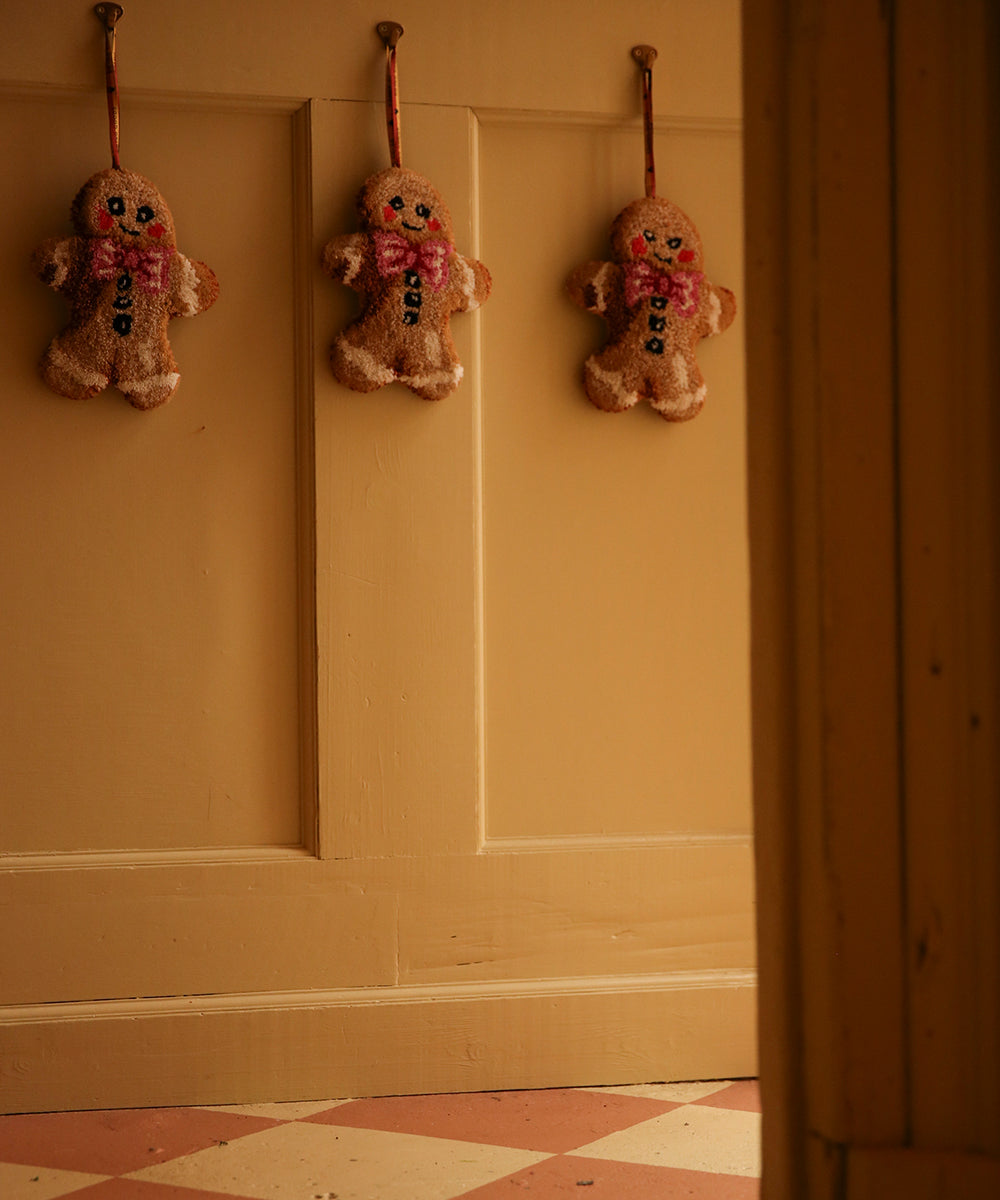 Gør dit hjem festligt med dette håndtuftede peberkage tæppe fra Doing Goods. Den søde peberkagefigur kan hænges op hvor som helst - fra døren til gangen, børneværelset eller endda juletræet. Lavet af 100% uld, er det skabt med kærlighed og opmærksomhed på detaljerne af dygtige håndværkere i Indien.