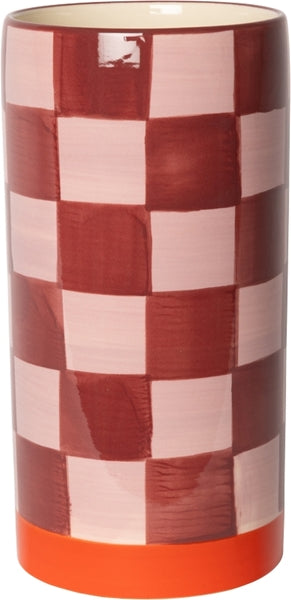 Diese karierte Vase von Au Maison ist eine schöne Ergänzung für Ihr Zuhause, egal ob sie Ihr Wohnzimmer, Ihre Küche oder Ihren Eingangsbereich schmückt. Mit seiner einzigartigen Farbkombination aus Kastanienbraun, Lila und Rot schafft es eine warme und einladende Atmosphäre. Die Vase ist 20 cm hoch und 10 cm im Durchmesser und eignet sich daher sowohl für Blumensträuße als auch als Dekorationsobjekt.