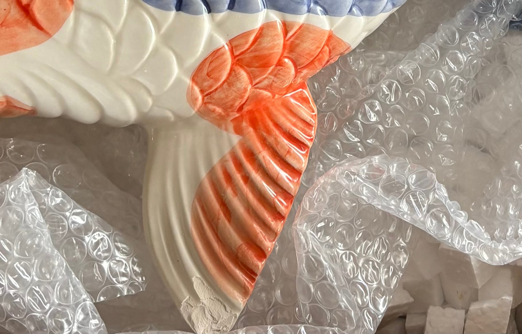 Handbemalter italienischer Karpfenfisch in Blau, Weiß und Orange