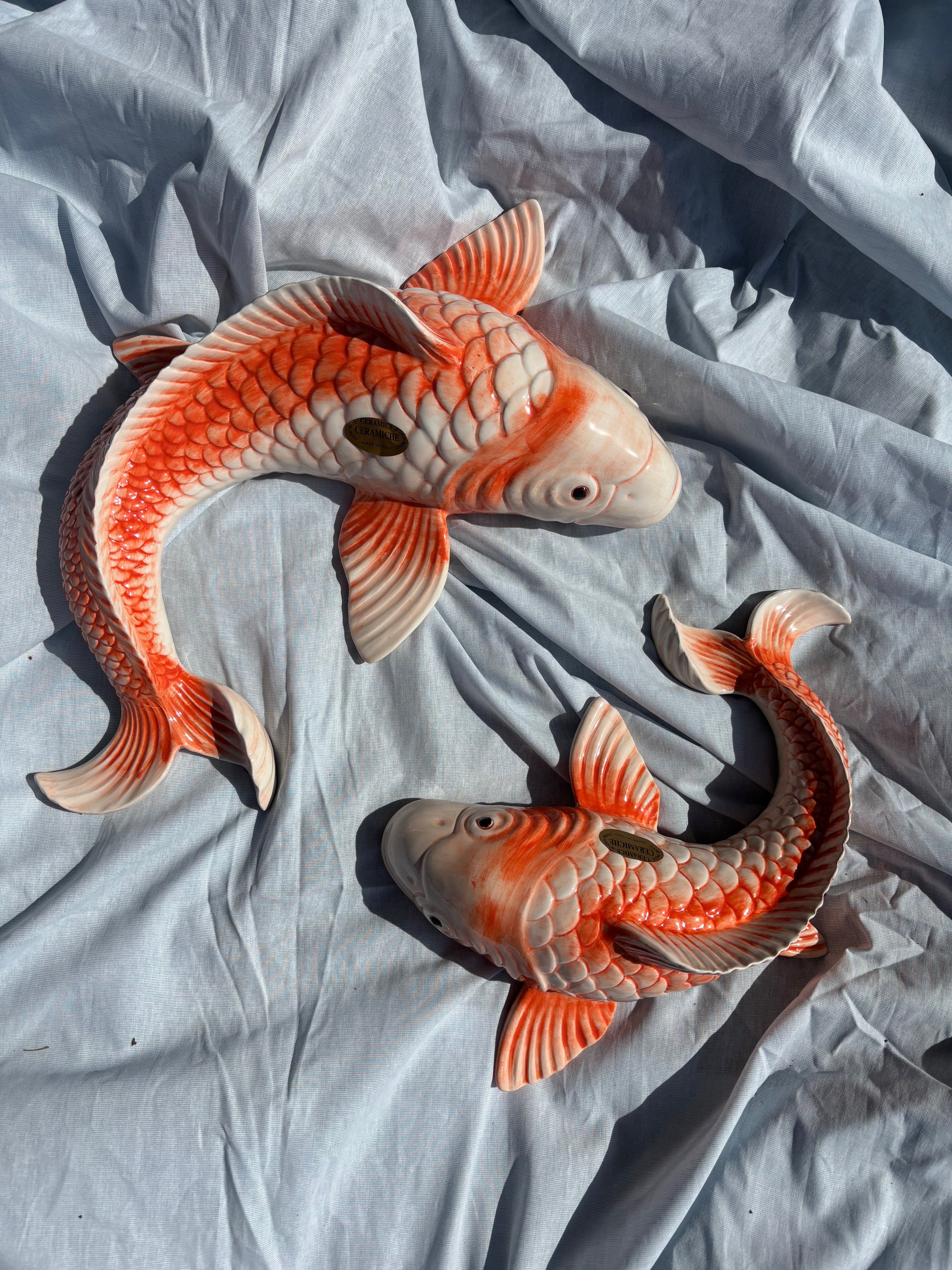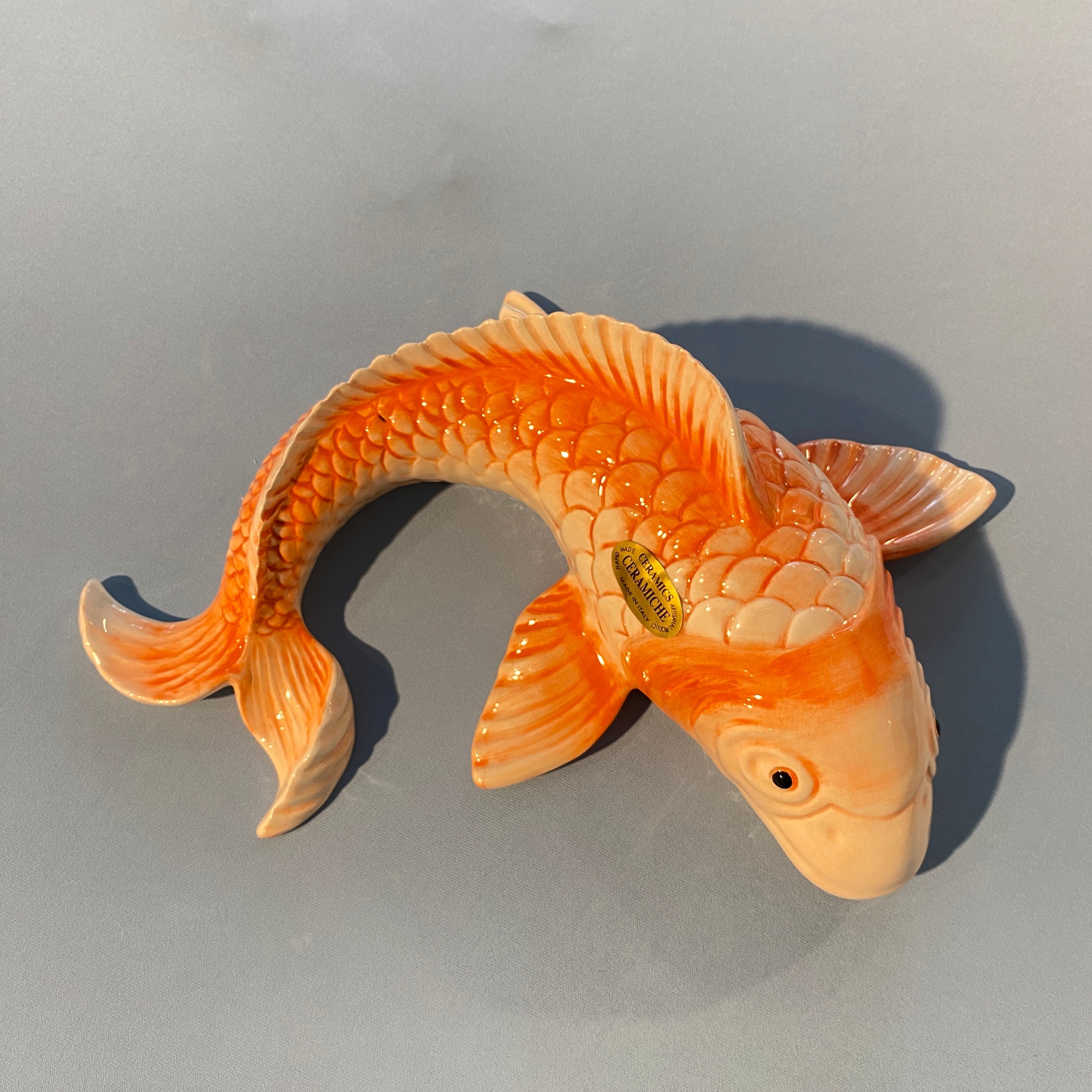 Dieser dekorative kleine Karpfen in Orange-/Rottönen ist ein Stück Handwerkskunst aus Italien. Der 30 cm lange Fisch ist handbemalt, was jedem Exemplar mit kleinen natürlichen Farbabweichungen seinen ganz eigenen Ausdruck verleiht. Der Karpfen kann an der Wand montiert oder als dekoratives Element auf Tischen und Regalen verwendet werden.