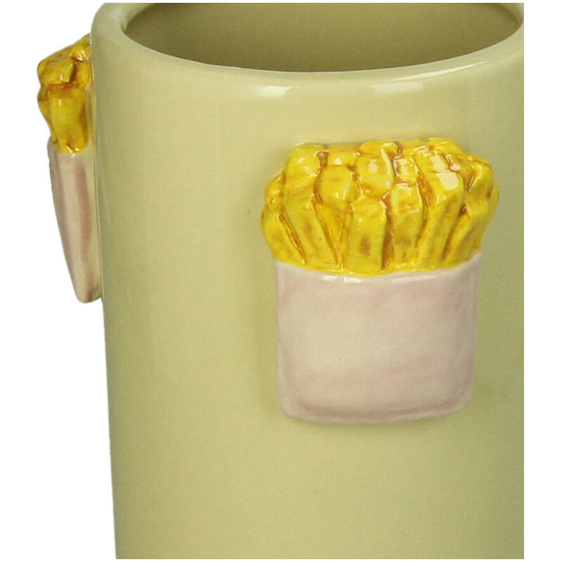 Die Pomfrit-Vase von Kersten ist die perfekte Möglichkeit, Farbe und Spaß in Ihre Einrichtung zu bringen. Diese einzigartige Vase hat die Form einer Portion Pommes Frites und verleiht jedem Raum eine verspielte Note. Egal, ob Sie es für Blumen oder als Dekorationsartikel verwenden, es wird mit Sicherheit alle Blicke auf sich ziehen.