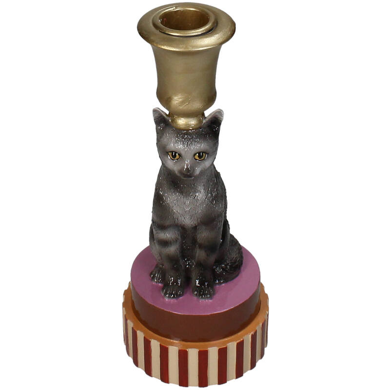 Denne katte lysestage fra Kersten er fremstillet i holdbar polyresin og kommer i livlige farver. Med sine 8x8x20 cm har den den perfekte størrelse til at skabe en hyggelig atmosfære på reolen, vindueskarmen eller som del af en dekorativ bordopstilling. Lysestagen har en sjov og karakteristisk katteform, der tilfører personlighed til ethvert rum.