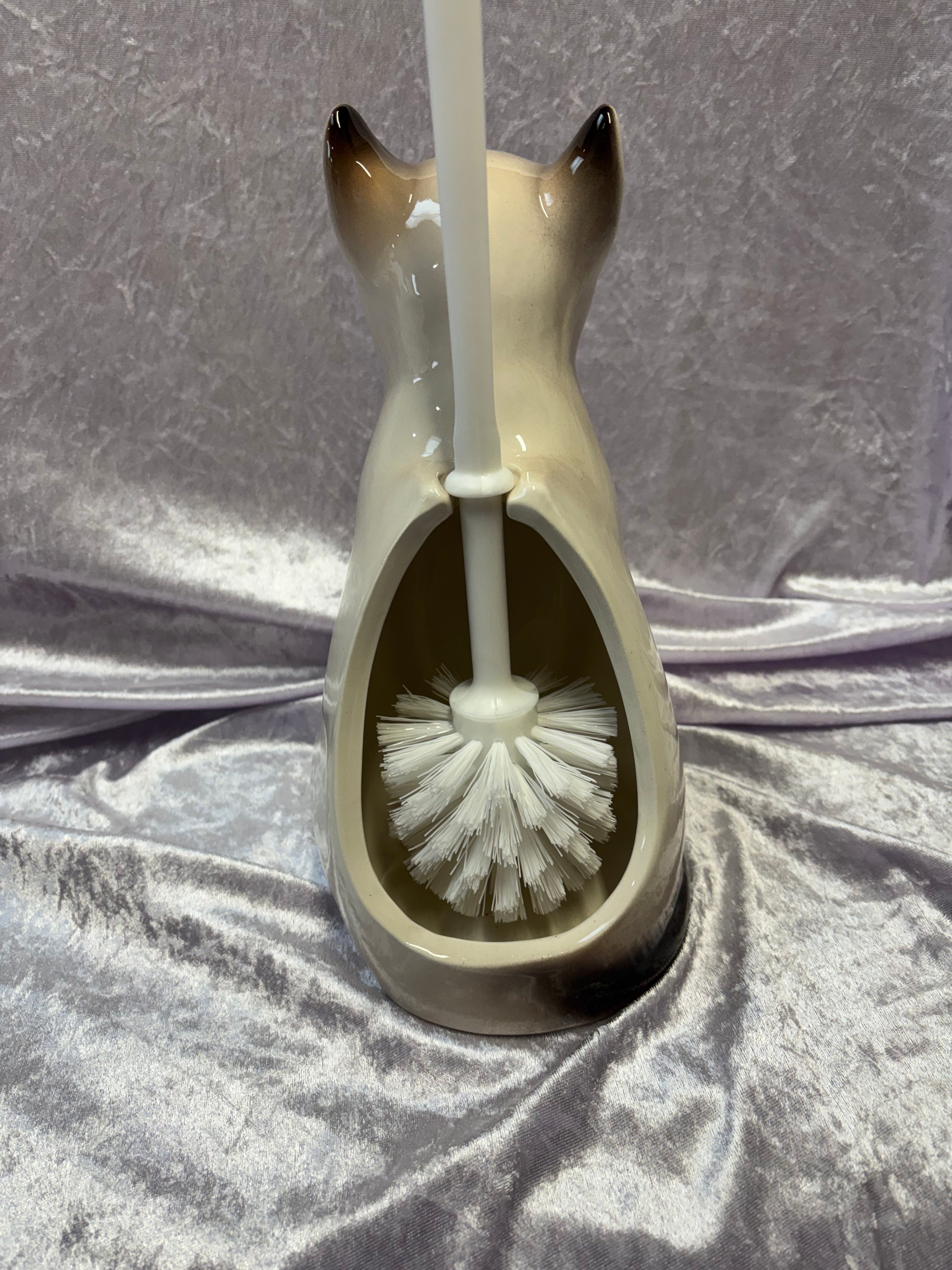 Eleganter Katzen-Toilettenbürstenhalter aus italienischem Porzellan für Ihr Badezimmer