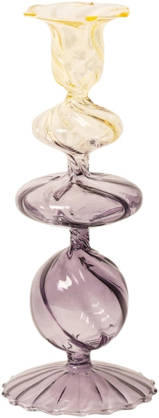 Dieser Kerzenhalter aus Glas von Eja verleiht jedem Raum einen Hauch von Farbe und Charme. Mit seinem hellen Gelb- und Hellviolettton eignet es sich perfekt, um eine warme und einladende Atmosphäre zu schaffen, sei es für einen gemütlichen Abend zu Hause oder einen festlichen Anlass.