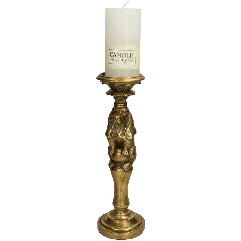 Verleihen Sie Ihrem Zuhause eine einzigartige und elegante Note mit diesem Hundekerzenhalter von Kersten. Der schöne Kerzenständer hat eine goldfarbene Oberfläche und eine lustige Form, die die Aufmerksamkeit von Gästen und Familienmitgliedern gleichermaßen auf sich ziehen wird.