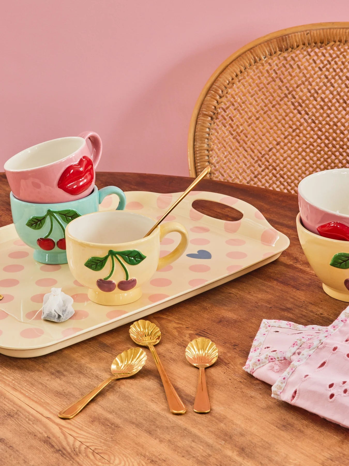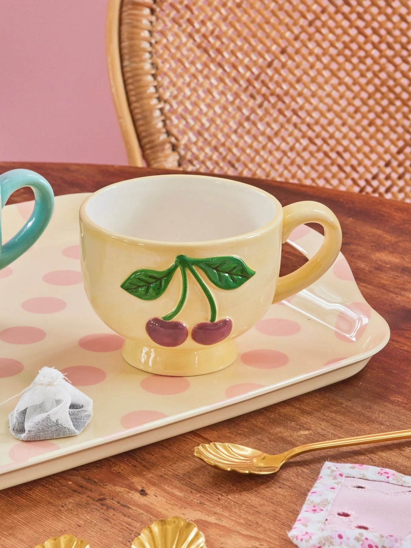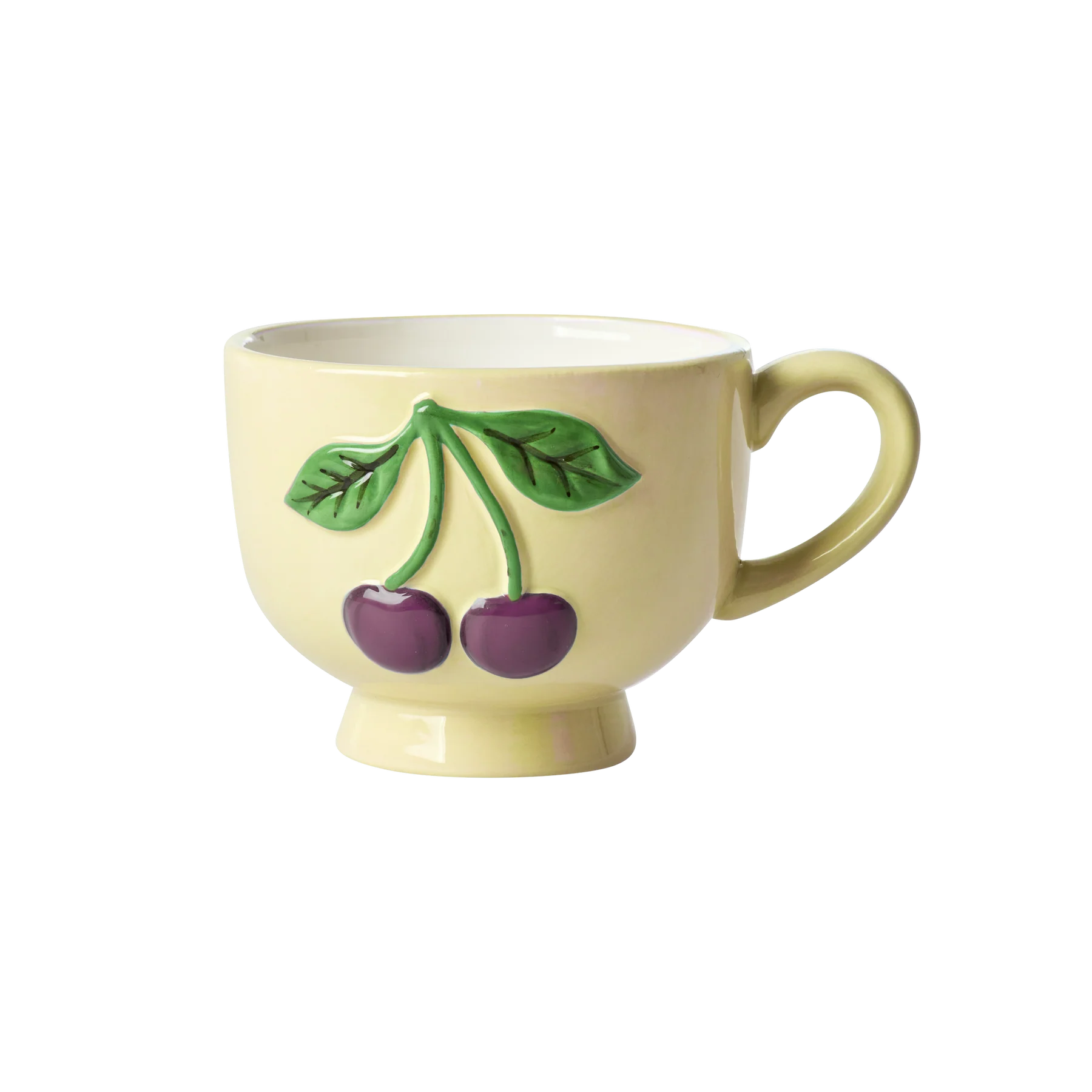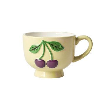 Oplev glæden ved at nyde din yndlingsdrik i dette smukke, cremefarvede keramikkrus prydet med solmodne kirsebær. Dette krus er ikke kun en fest for øjet, men også en praktisk tilføjelse til din hverdag. Det er perfekt til te, snacks eller som en dekorativ opbevaringsløsning for småting.