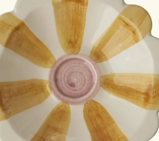 Erleben Sie die Schönheit dieser feinen, kleinen Schalen mit einem blumen -inspirierten Design und wunderschönen Streifen. Jede Schüssel wird von einer Gruppe talentierter Frauen von Hand in Portugal ausgelagert, wodurch jede Schüssel mit ihren eigenen Bürstenstrichen einzigartig ist. Dieses Gericht verleiht Ihrem Zuhause eine charmante Note und kann für alles verwendet werden, von Snacks bis zur Dekoration.