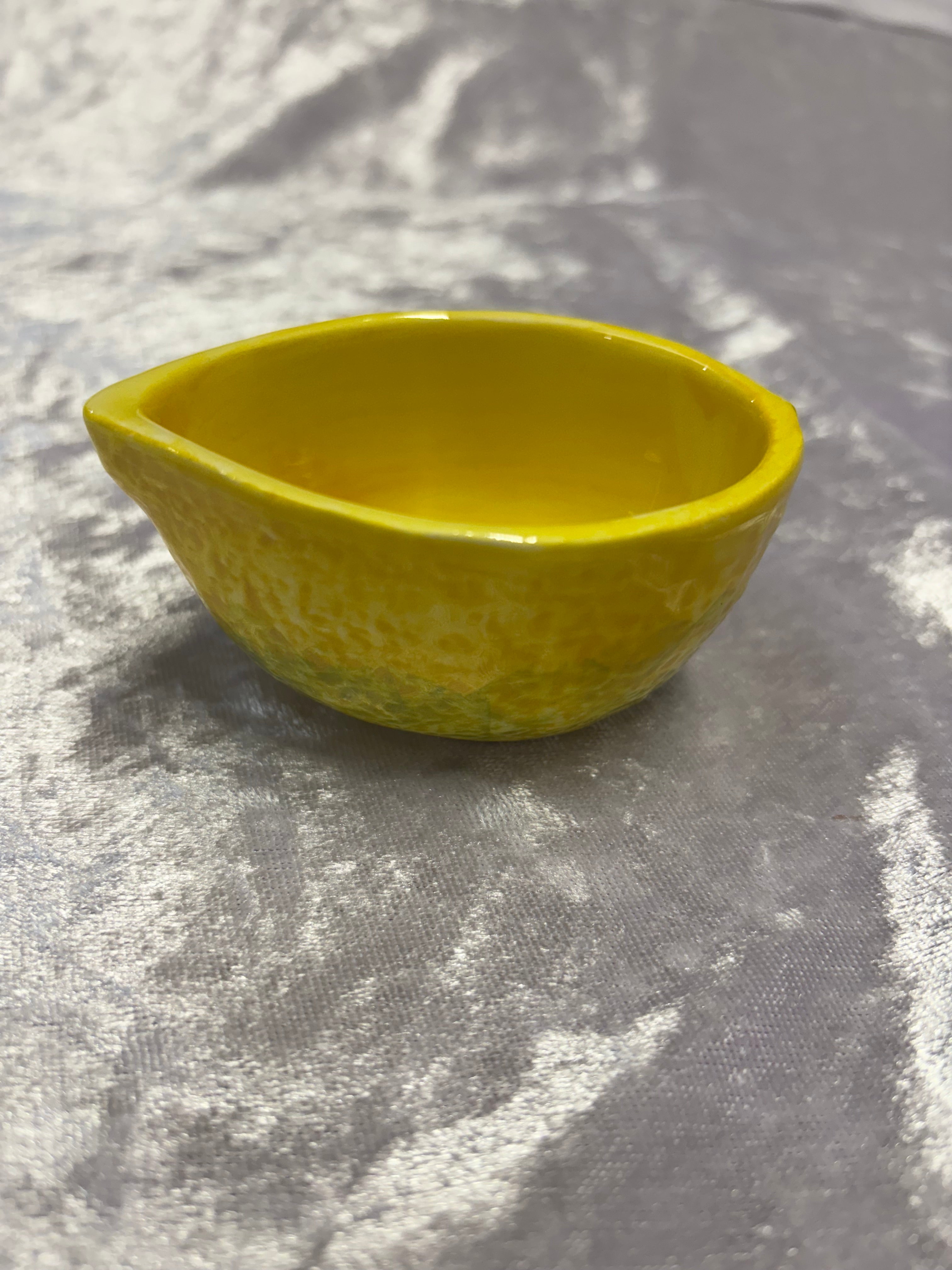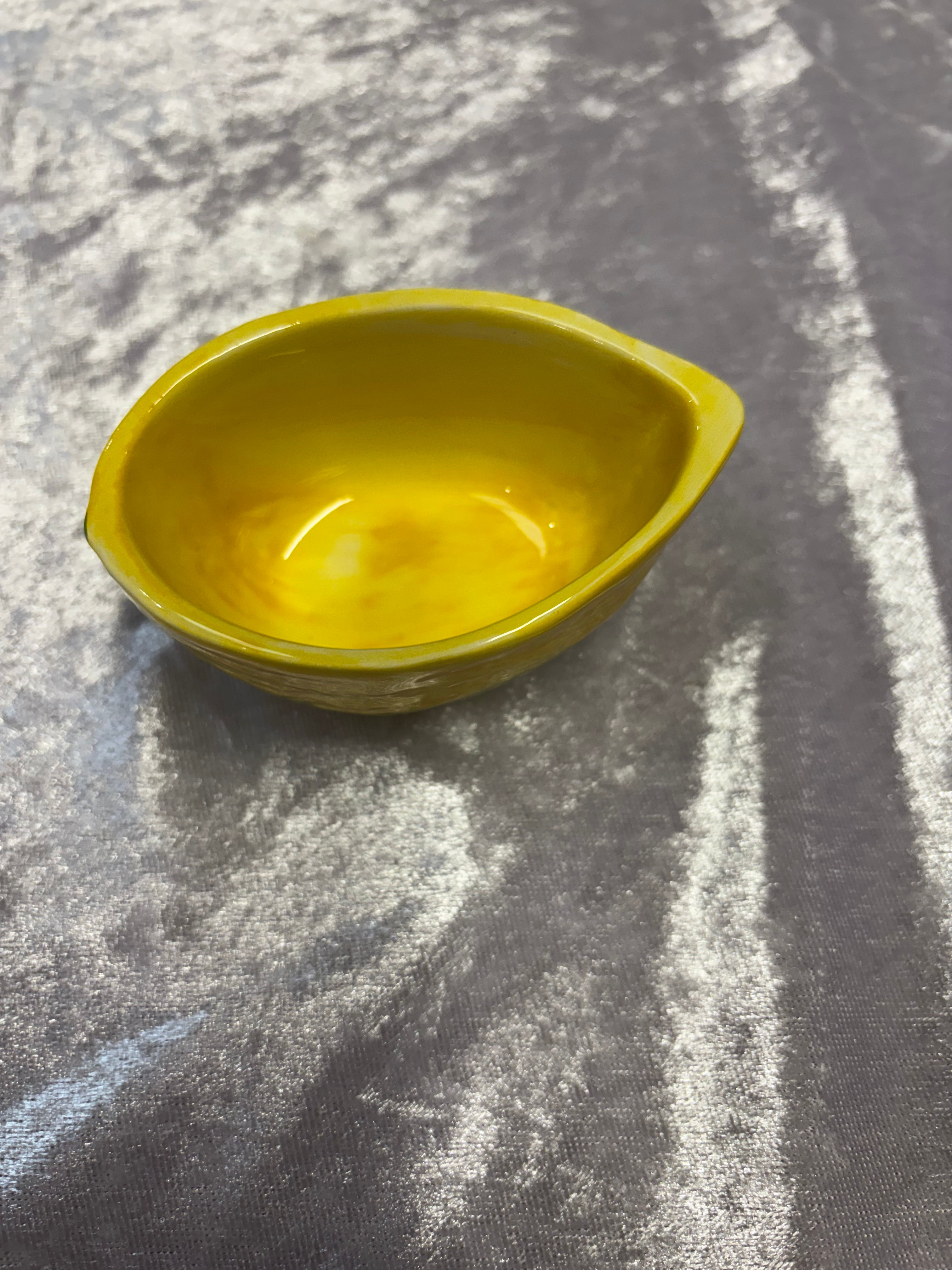 Die kleine Zitronenschale der Caja Company verleiht Ihrem Zuhause einen Hauch von Eleganz. Handbemalte italienische Keramik macht jede Schüssel zu einem Unikat und die Farben können variieren, was ihr eine persönliche Note verleiht. Diese Schüssel eignet sich perfekt zum Aufbewahren von Salz oder zum Aufbewahren Ihres Lieblingsschmucks im Badezimmer.