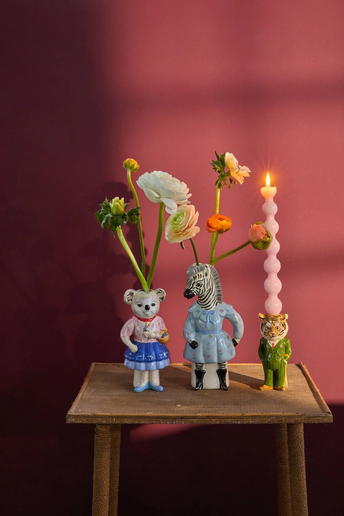 Die Koala Keramikvase von Nathalie Lété für Rice vereint Funktionalität und künstlerischen Ausdruck in einem. Mit ihrer Höhe von 20 cm und den farbenfrohen Koala-Motiven fungiert die Vase sowohl als praktischer Blumenhalter als auch als dekoratives Element, das dem Innenraum Persönlichkeit verleiht.