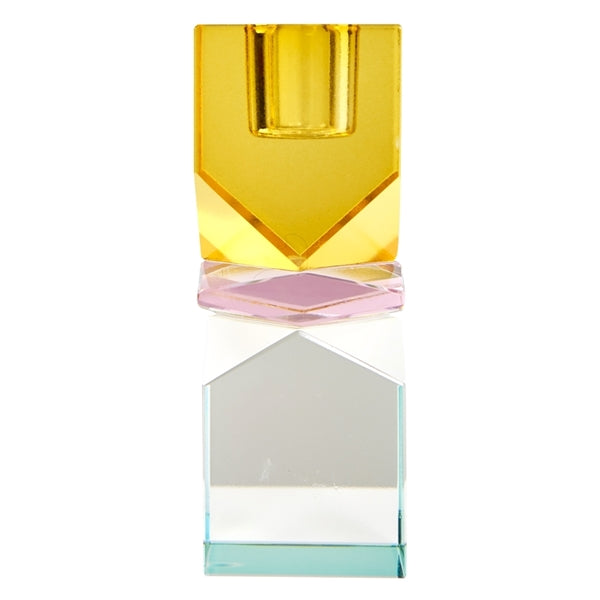 Krystal lysestage i gul/pink/lys mint