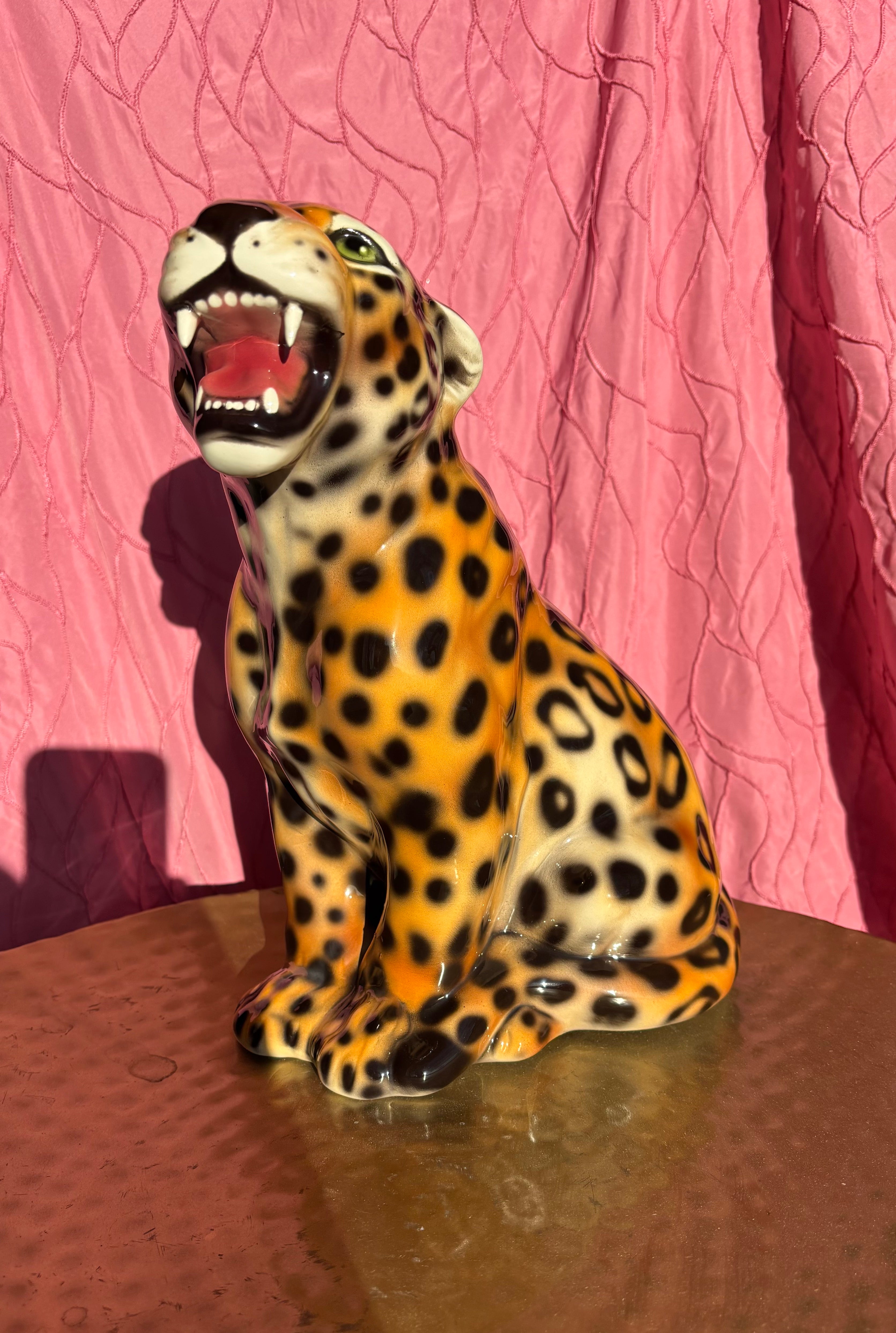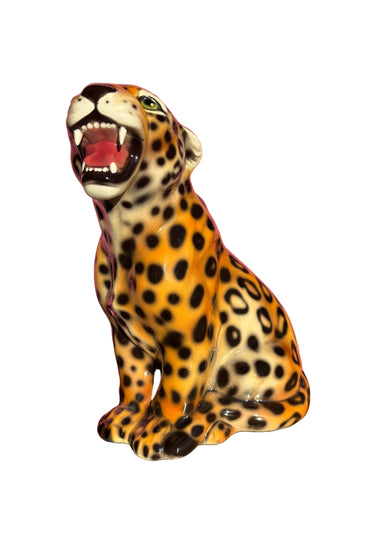 Denne 30 cm høje leopardfigur i 90'er-stil er håndmalet på en italiensk porcelænsfabrik med over 30 års erfaring. Den imponerende figur tilføjer personlighed og karakter til din indretning, hvad enten den vogter entréen eller skaber junglestemning ved stueplanterne. Hver figur har sit eget unikke håndmalede mønster, hvilket gør den til et særligt indretningselement.