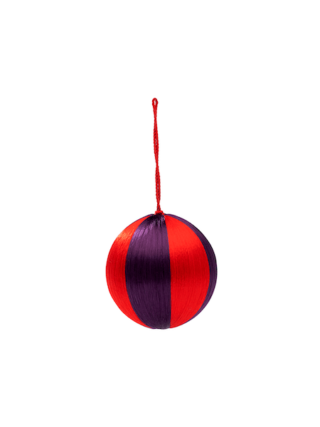 Weihnachtsverzierung mit kleinen Fäden in lila und roten Streifen!