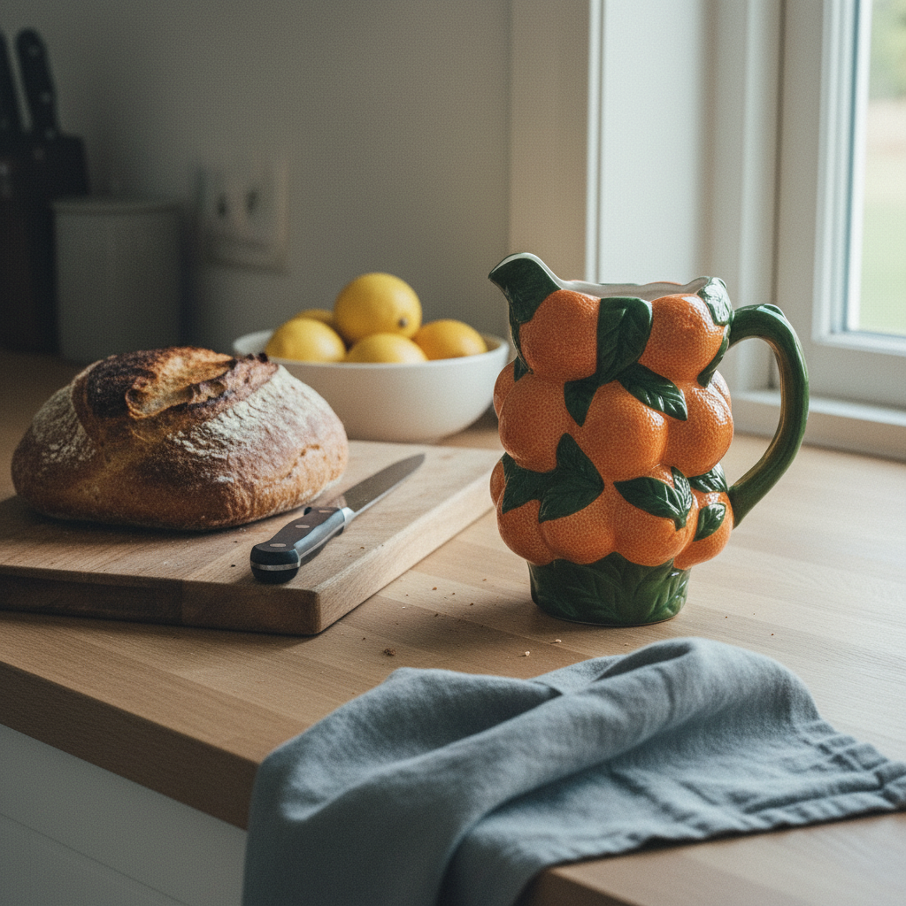 Die Kanne dient sowohl als praktisches Serviergeschirr als auch als dekoratives Element auf dem Tisch. Die besondere Orangenform verleiht der Tischdekoration ein frisches und verspieltes Element, egal ob im Alltag oder zu besonderen Anlässen.