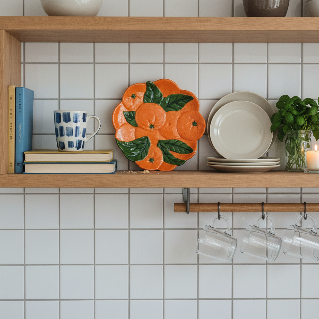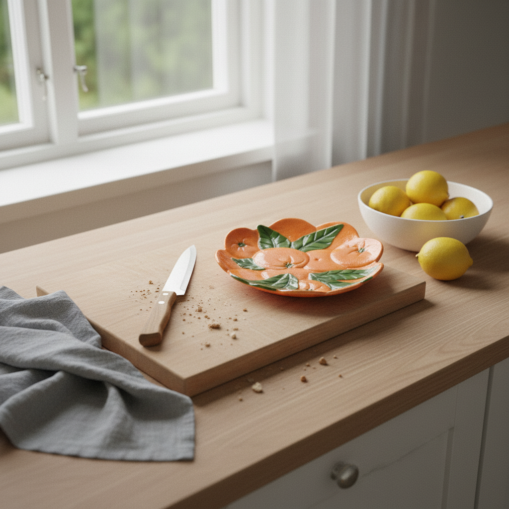 Die orangeförmige Schale bringt ein organisches Element in Ihr Zuhause. Sie dient sowohl als Servierplatte als auch als dekoratives Element, wenn sie nicht in Gebrauch ist. Das Material ist langlebig und leicht zu reinigen, wodurch die Schale sowohl für den täglichen Gebrauch als auch für besondere Anlässe praktisch ist.