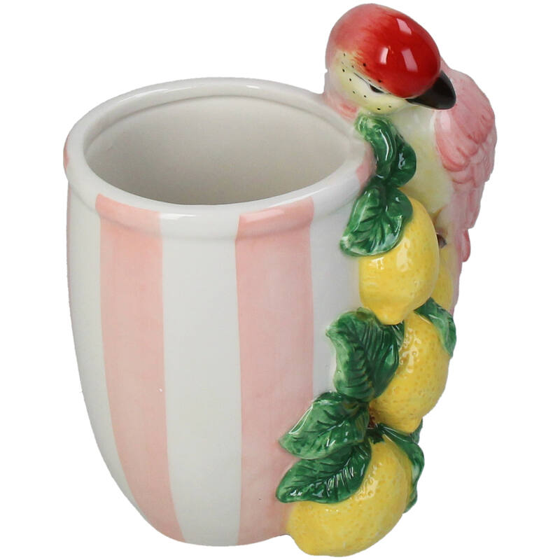 Die markante Vogelform mit Zitronenmotiv macht diesen Blumenschuppen zu einem Gesprächsthema. Die rosa Streifen bilden einen lebendigen Kontrast zu grünen Pflanzen und verleihen jedem Raum einen Hauch von frischer Luft. Bitte beachten Sie, dass jeder Töpfchenschutz ein Unikat ist und die Farbtöne von Produkt zu Produkt variieren können.