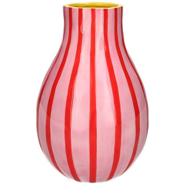 Die gestreifte Vase von Gift Company verleiht Ihrer Einrichtung einen frischen und verspielten Touch. Mit ihrer auffälligen Farbkombination aus Pink und Rot wird sie schnell zum Blickfang in jedem Raum. Ganz gleich, ob Sie sie mit Blumen oder Zweigen füllen oder einfach als Dekoration stehen lassen – diese Vase wird garantiert alle Blicke auf sich ziehen.