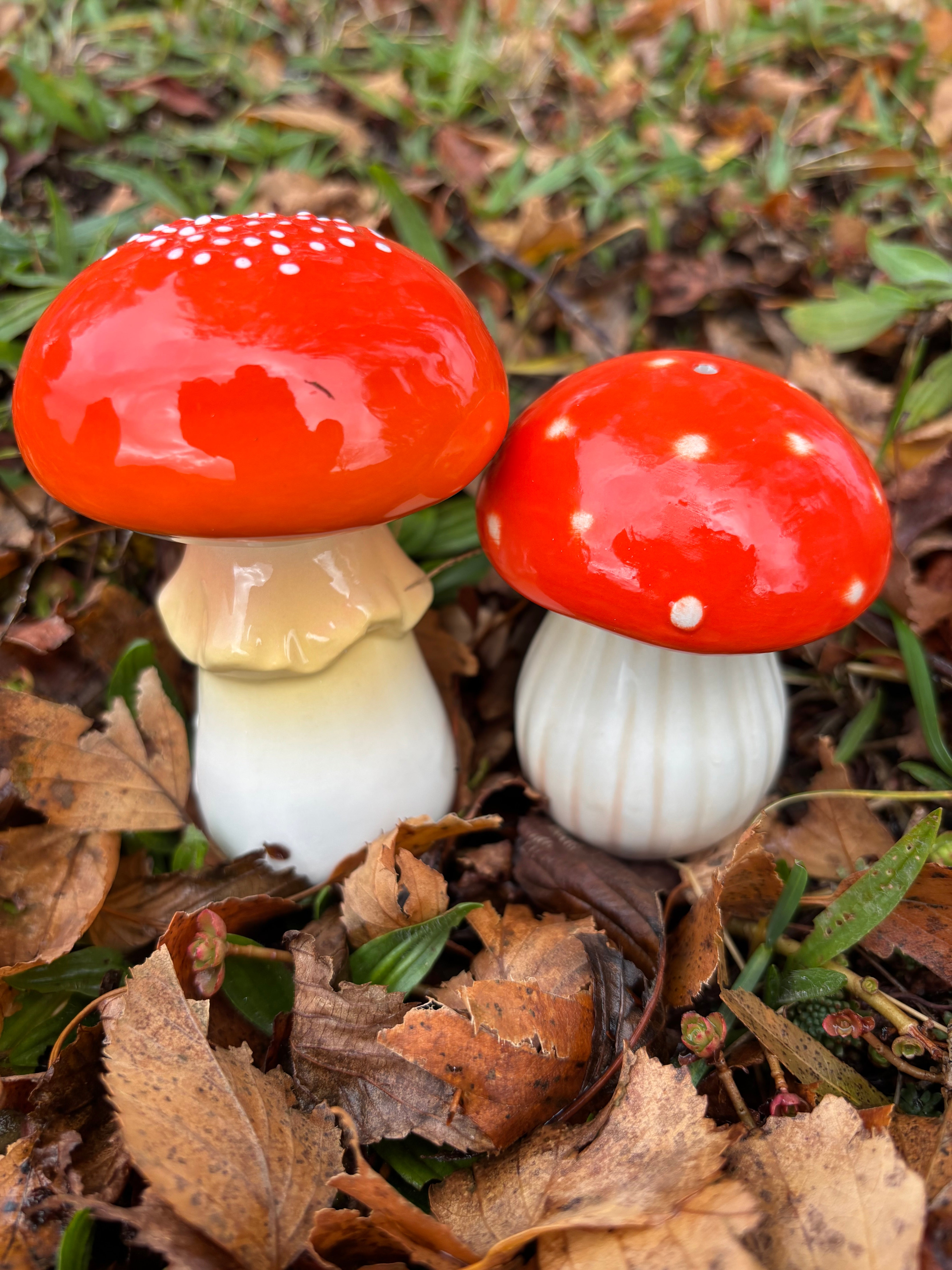 Mit ihrem naturgetreuen Aussehen werden diese pilzförmigen Salz- und Pfefferstreuer zum Gesprächsstoff am Tisch. Der größere Pilz misst 9,5 x 7 cm, während der kleinere 8 x 6 cm groß ist. Dadurch haben sie eine gute Größe, um auf dem Tisch zu stehen, ohne zu viel Platz einzunehmen.