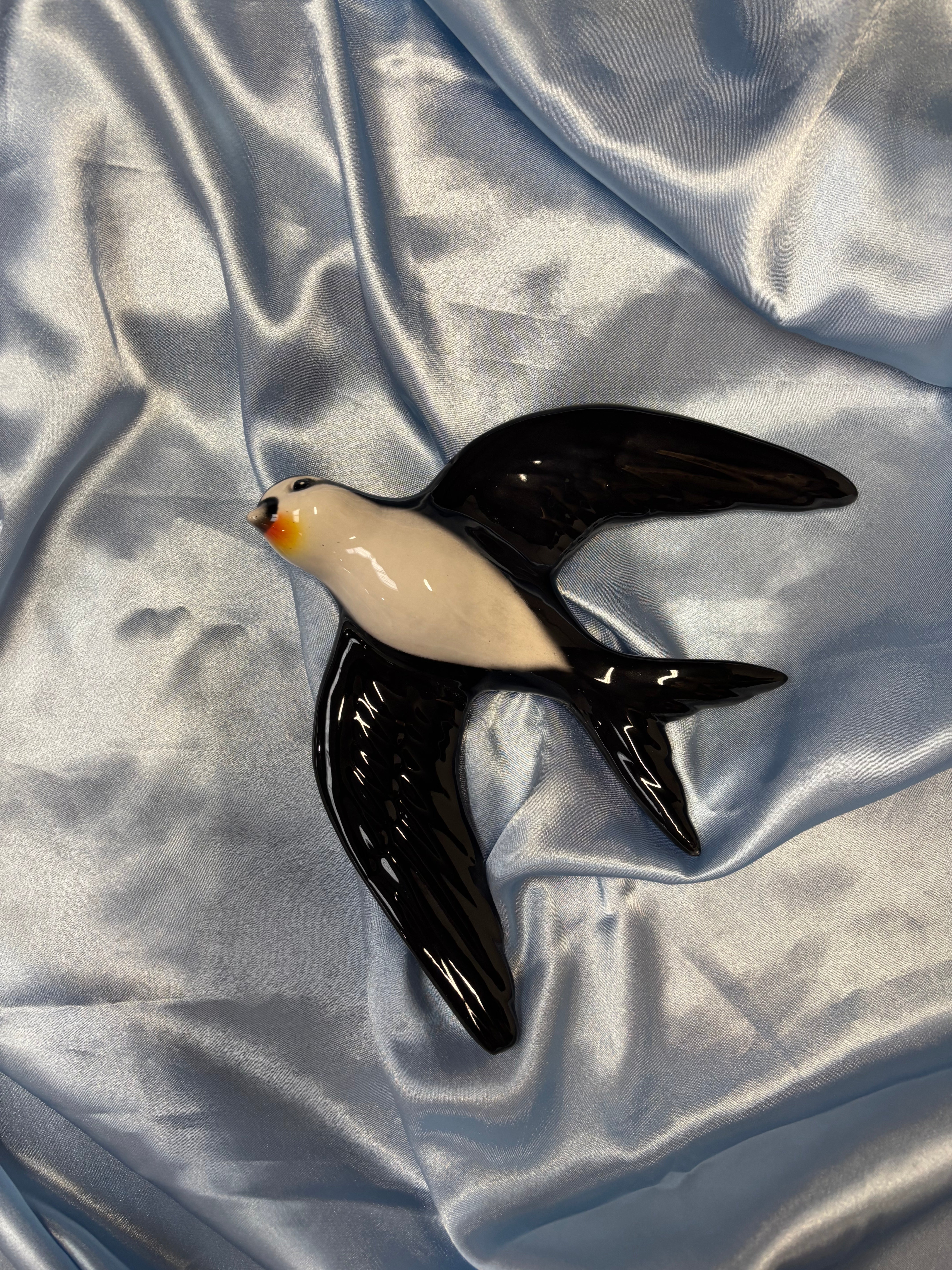Handbemalte italienische Porzellanfigur einer eleganten Schwalbe