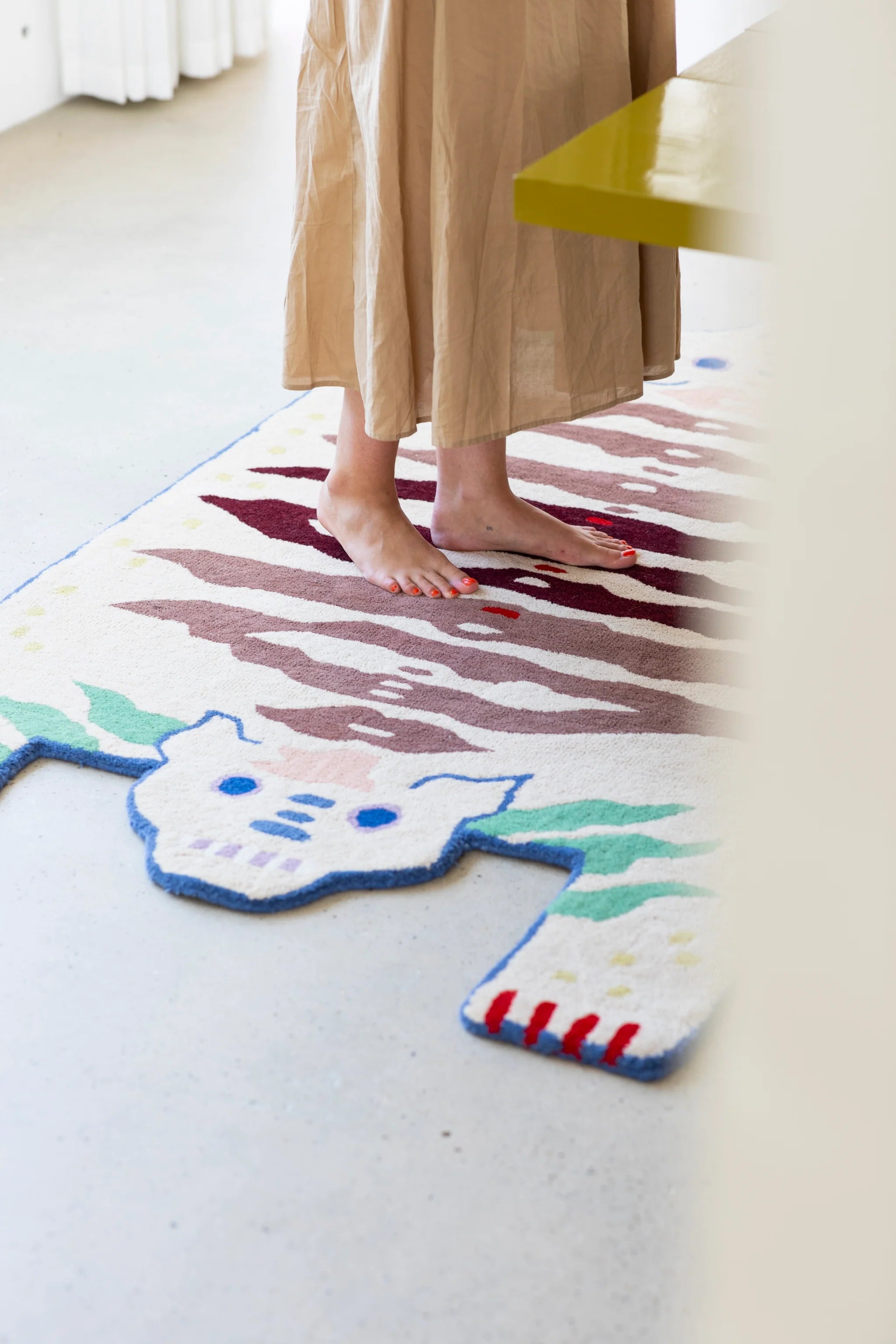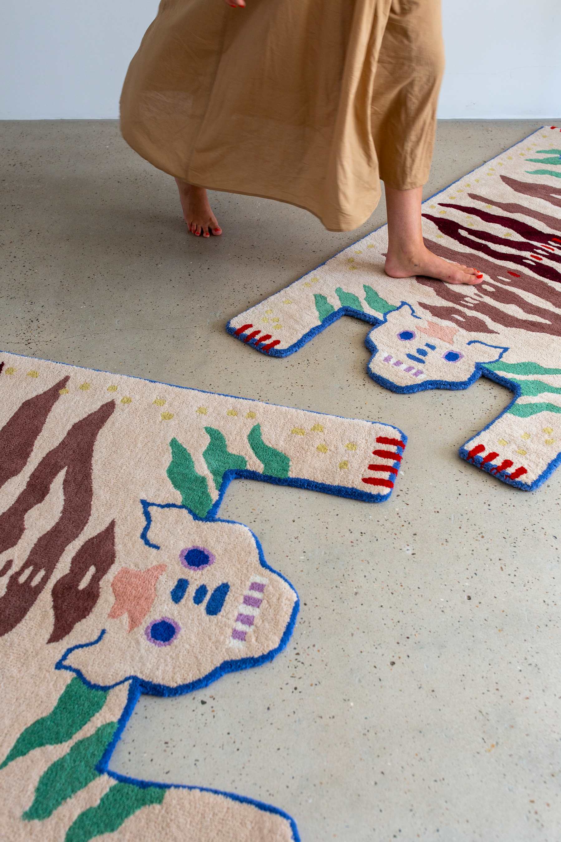 Soulmates Rye ist ein einzigartiger Teppich mit einem majestätischen Design eines doppelten Tigers. In tibetischen Traditionen symbolisieren Tigerhäute die Weisheit und mit zwei Köpfen repräsentiert der Tiger sowohl männliche als auch weibliche Aspekte. Das Doppel -Tiger -Design ist auch von Fabeln inspiriert und symbolisiert das Gleichgewicht und die Harmonie im Geschichtenerzählen.
