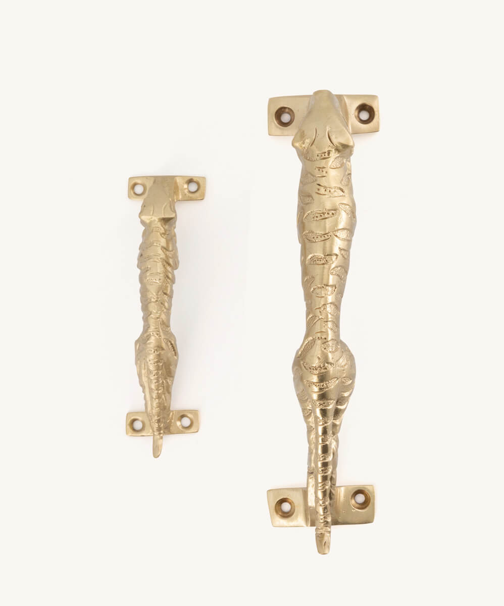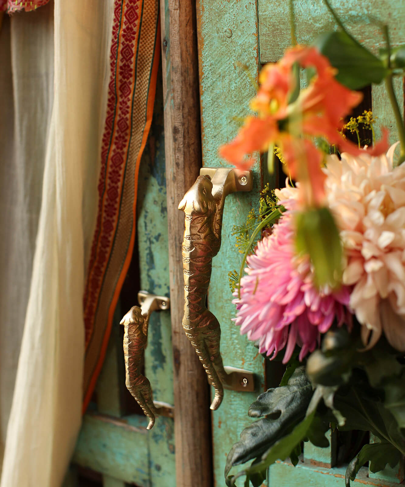 Giv dine skabe og døre et personligt præg med dette smukke håndtag, der også kan fungere som en dekorativ smykkestang. Hver eneste detalje er omhyggeligt håndlavet i Indien, hvilket sikrer, at dit håndtag er helt unikt.