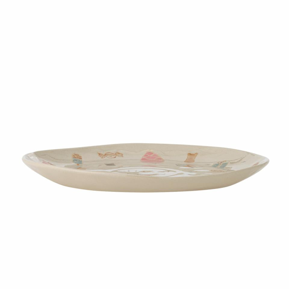 Der Süßwarenschild aus dem Bloomingville Mini ist der perfekte Weg, um Ihren Versammlungen ein wenig zusätzliches Fest zu verleihen. Dieses wunderschöne Steinzeuggericht ist mit farbenfrohen und festlichen Illustrationen von Geschenken, Eis und Süßigkeiten geschmückt, was es ideal für die Servieren von Süßigkeiten oder anderen Köstlichkeiten ist.