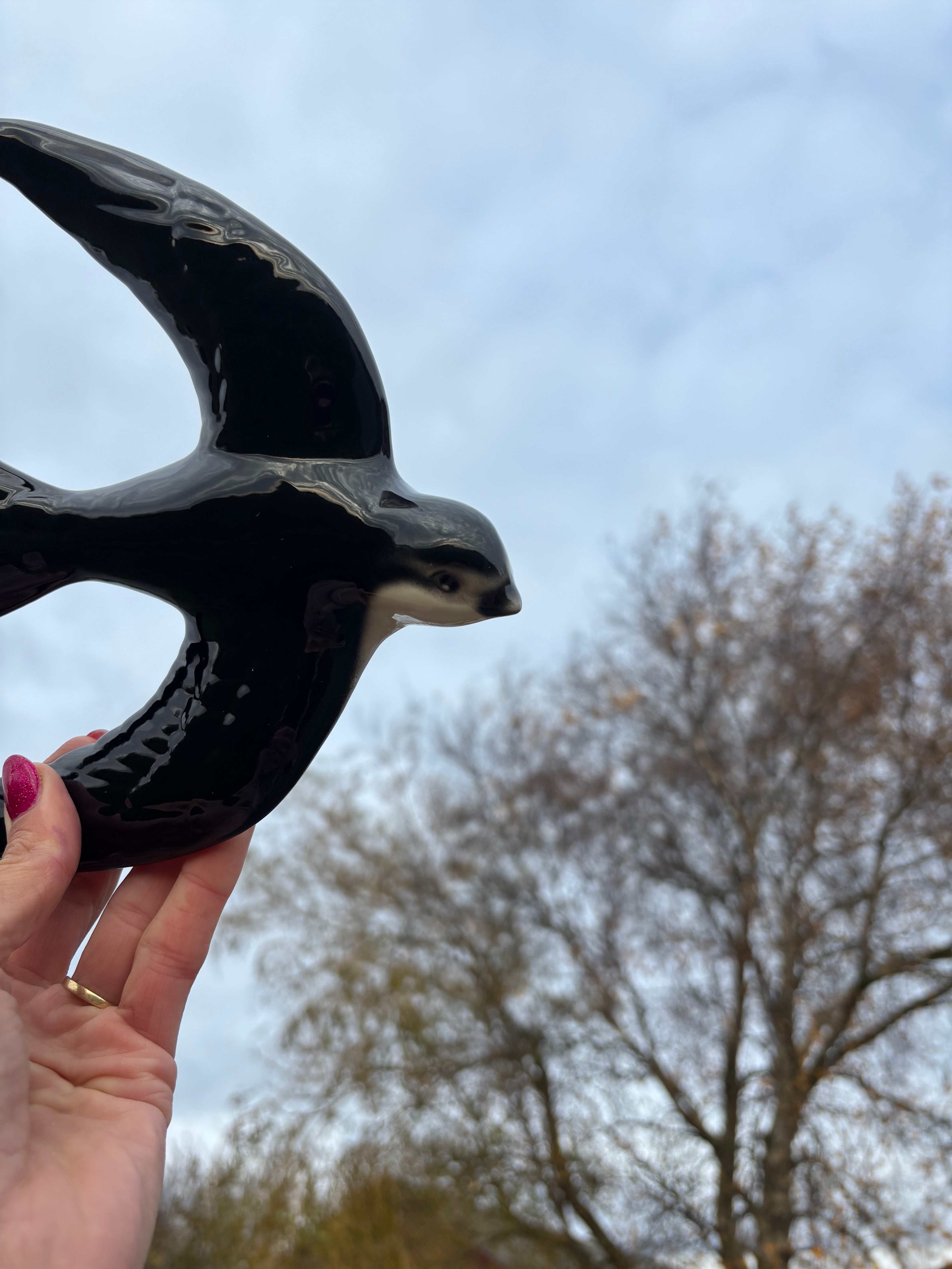 Denne fine porcelænsfigur forestiller en svale og er særligt udvalgt af Dims Studio. Figuren er både produceret og håndmalet på en italiensk porcelænsfabrik, som har specialiseret sig i porcelænsfigurer gennem mere end 30 år. Den håndmalede detalje giver hver svale et unikt udtryk, da mønstret kan variere en smule fra figur til figur.