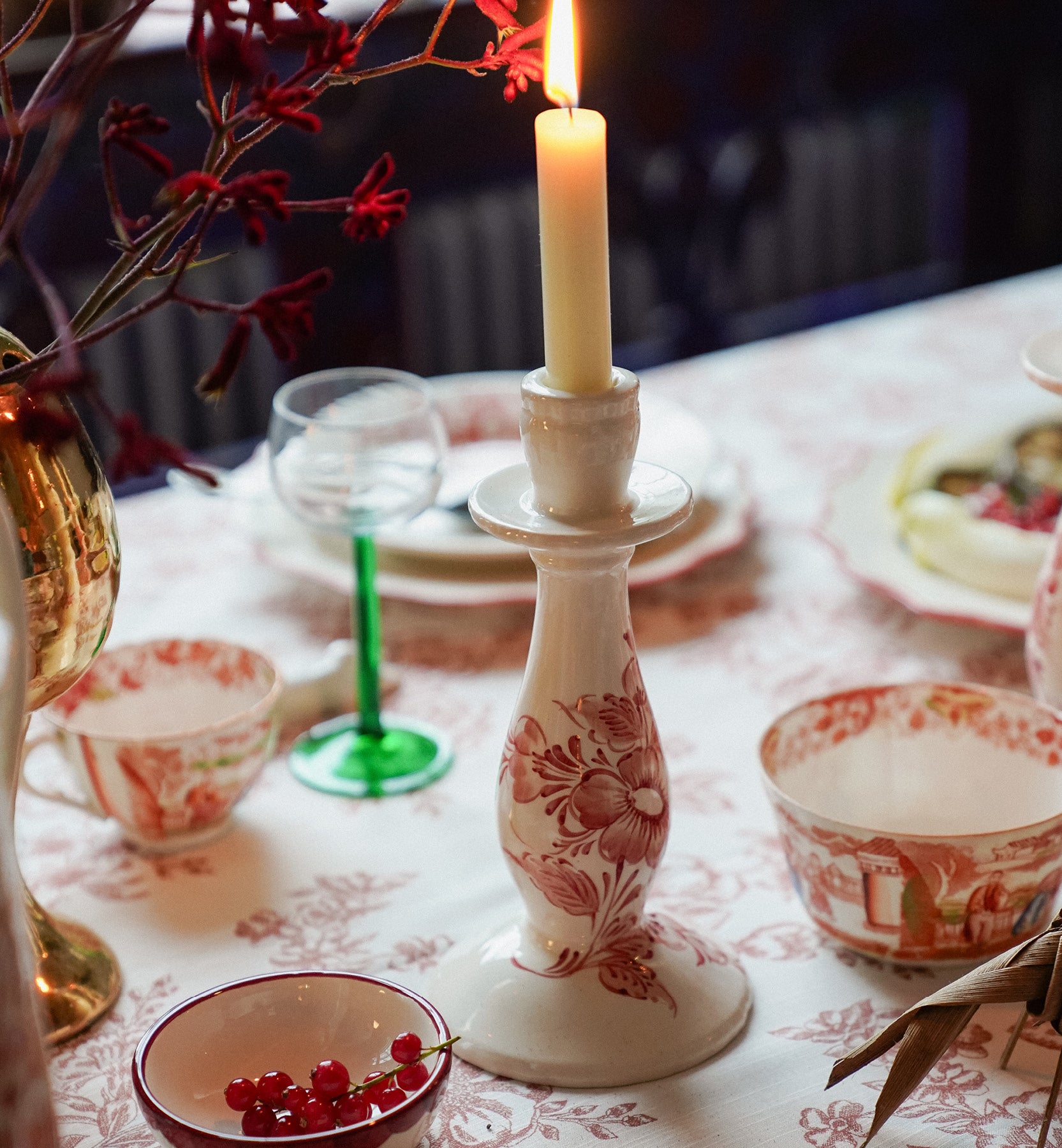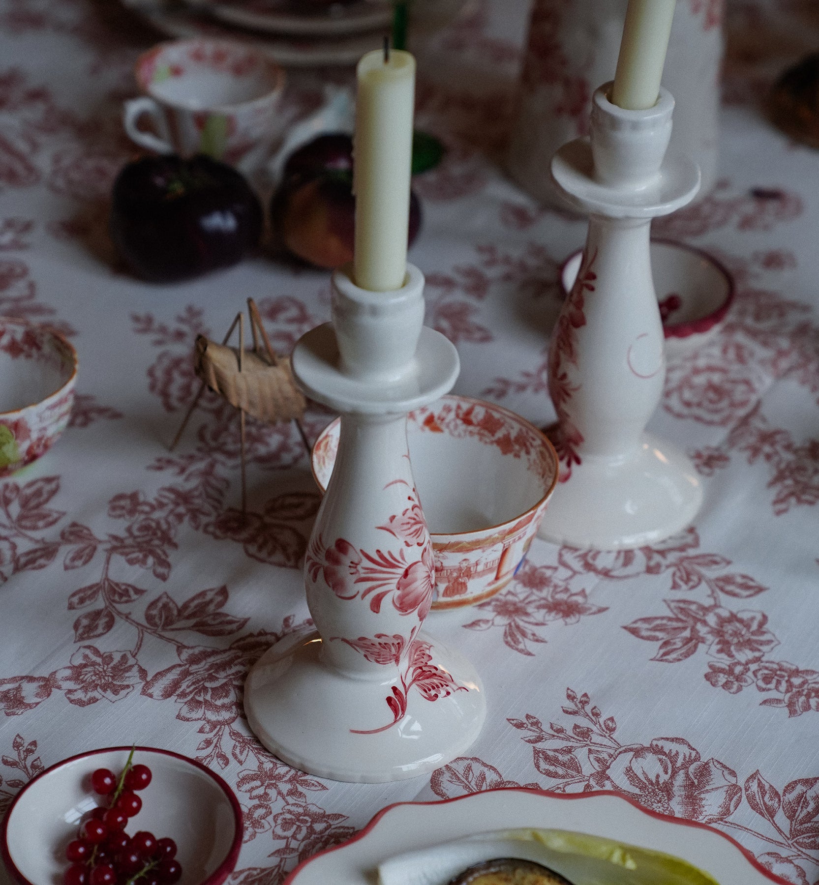 Den Whimsical Rose lysestage er ikke bare en lysestage; den er et kunstværk, der tilfører dit hjem en unik og romantisk atmosfære. Med sit håndmalede rosedesign er denne keramiske lysestage perfekt til at pryde din hylde eller bord, hvor den vil fange opmærksomheden hos enhver gæst.
